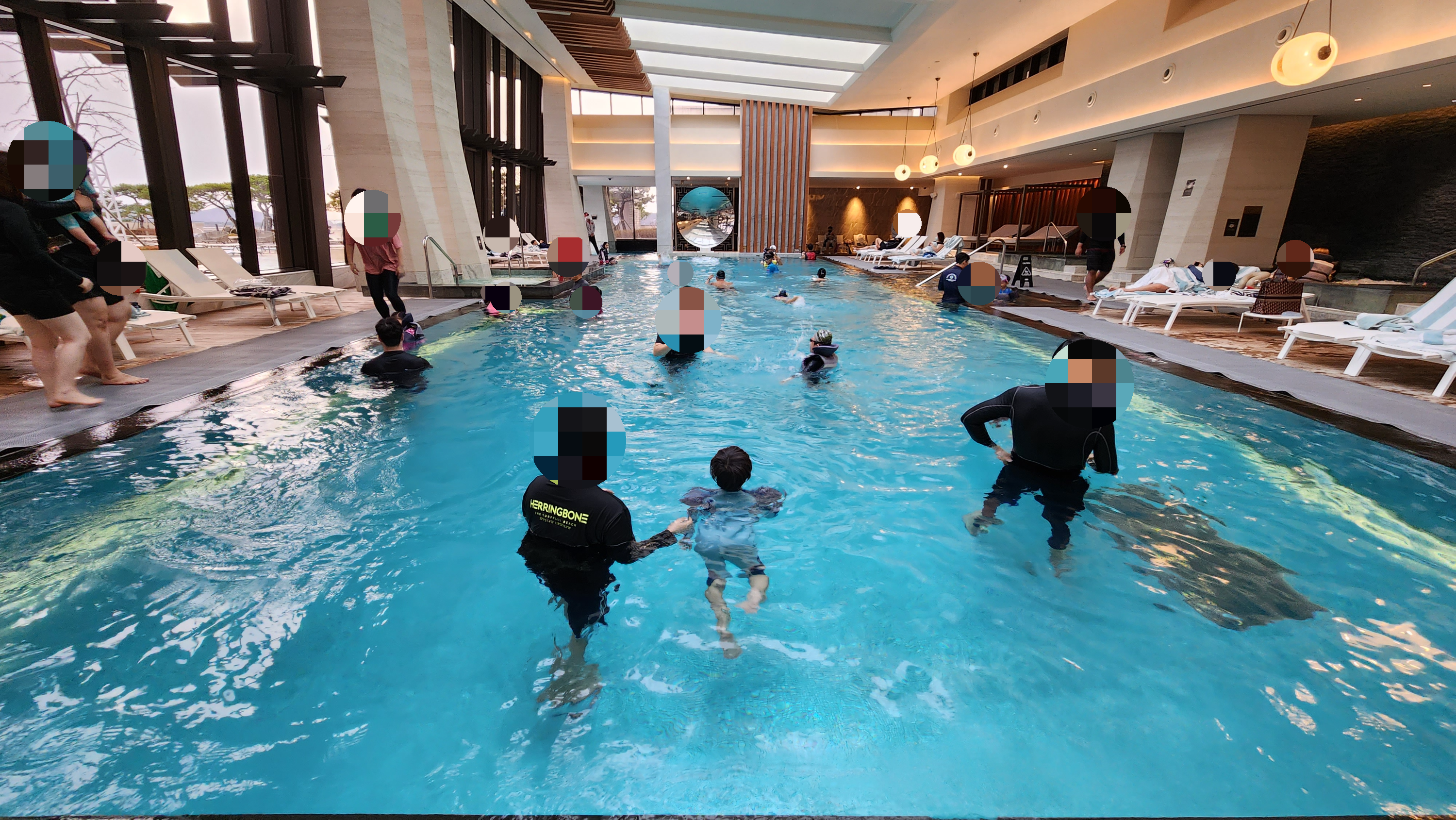 날이 정말 추웠지만 물은 따끈해서 즐겁게 놀 수 있었던 아웃도어풀