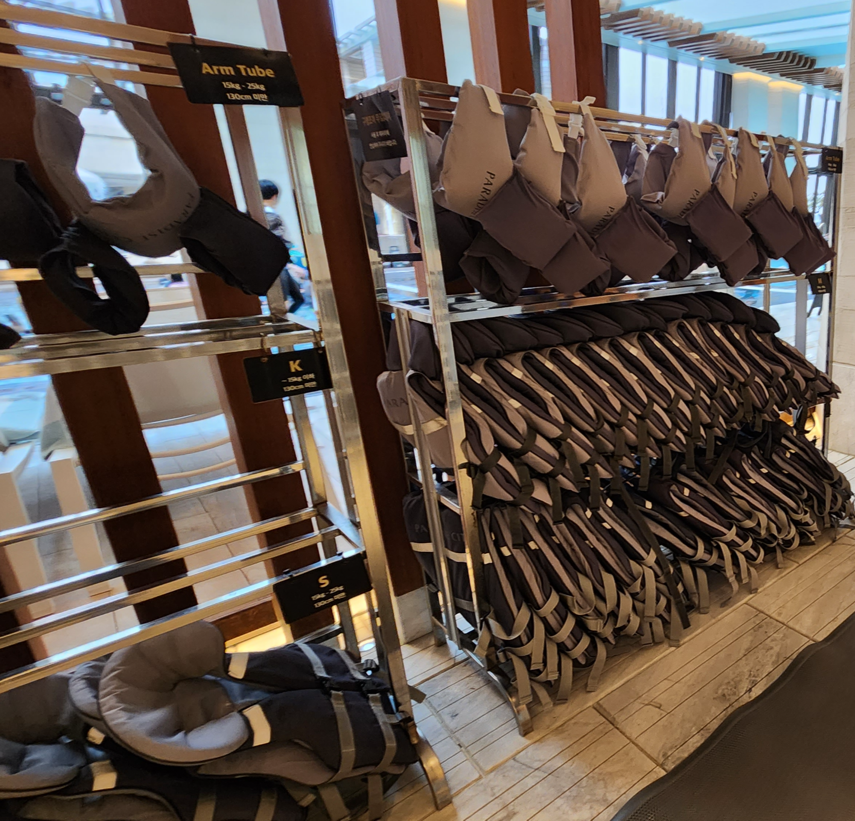 어린이용 구명조끼와 암튜브가 비치되어 있어 자유롭게 사용 가능하고 비치타월도 자유롭게 이용 가능했어요.