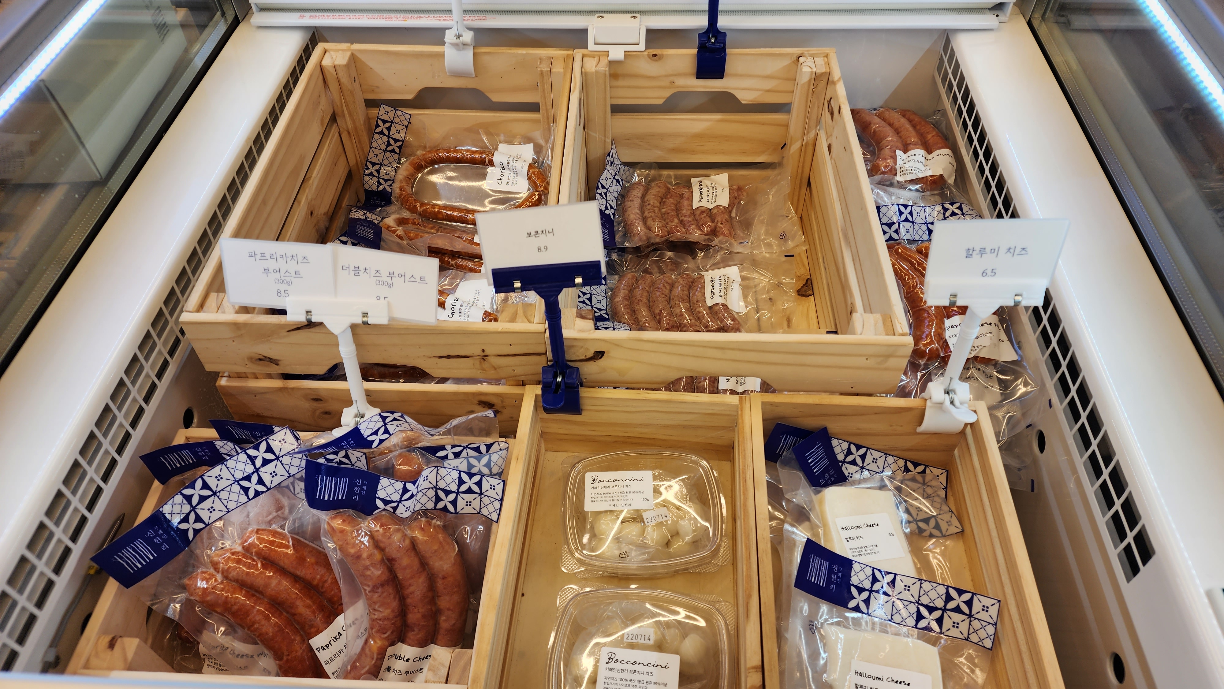 브런치 메뉴 외에 치즈, 샌드위치, 소세지, 맥주, 커피 등이 판매 중이예요.
