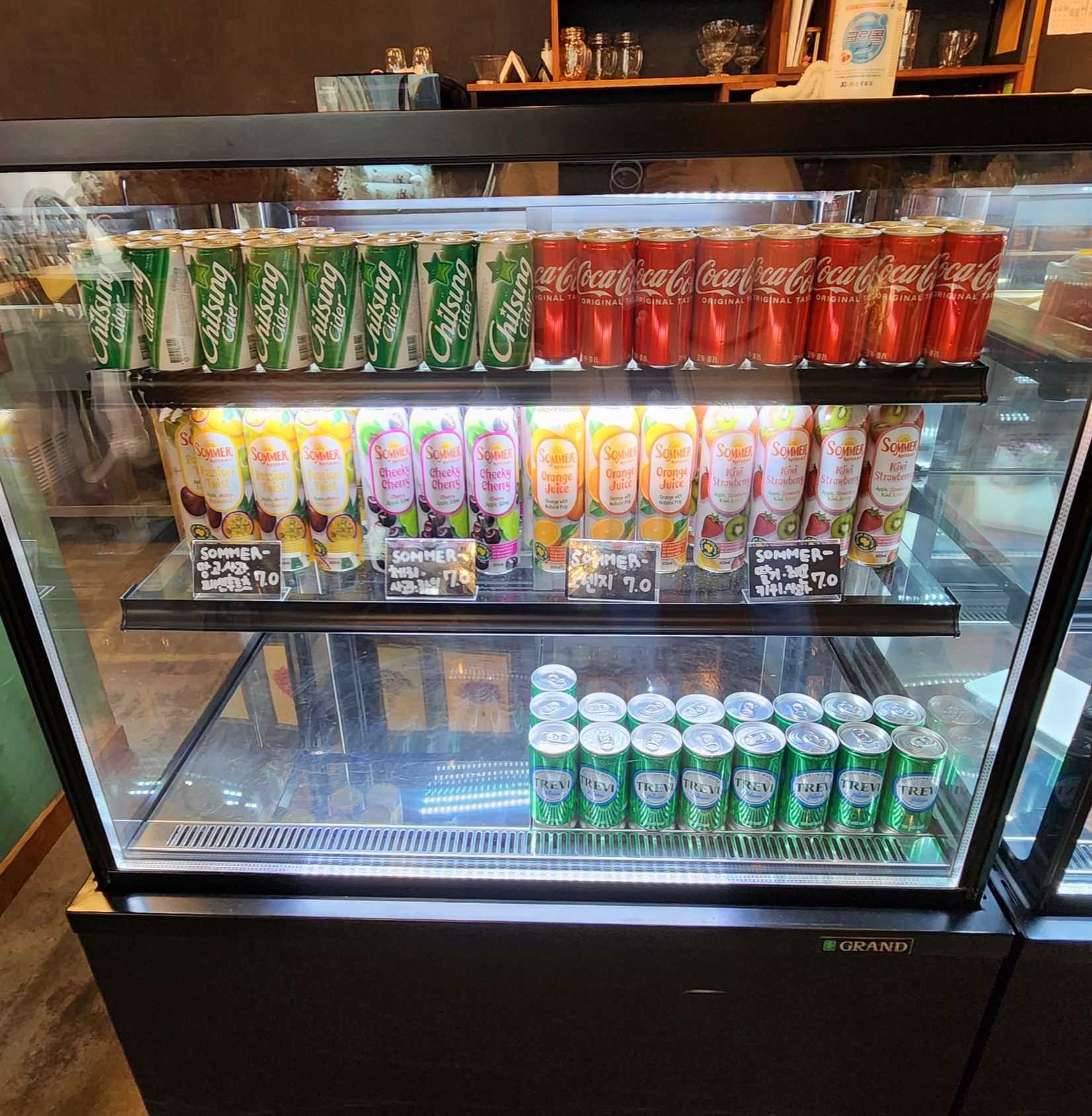 아메리카노와 아이스 카페라떼, 착즙주스 키위를 시켰어요.