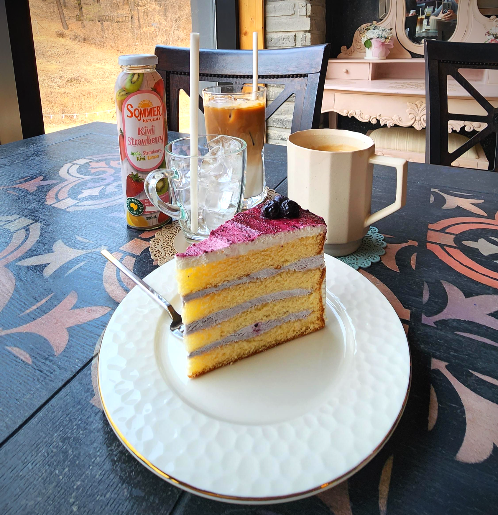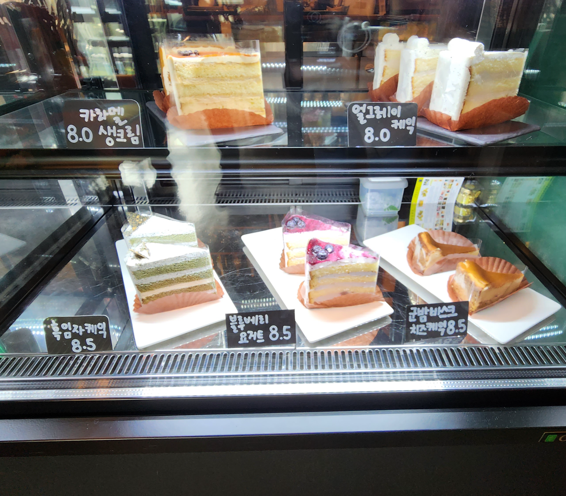 쇼케이스에 블루베리 요거트 케이크도 주문했어요.