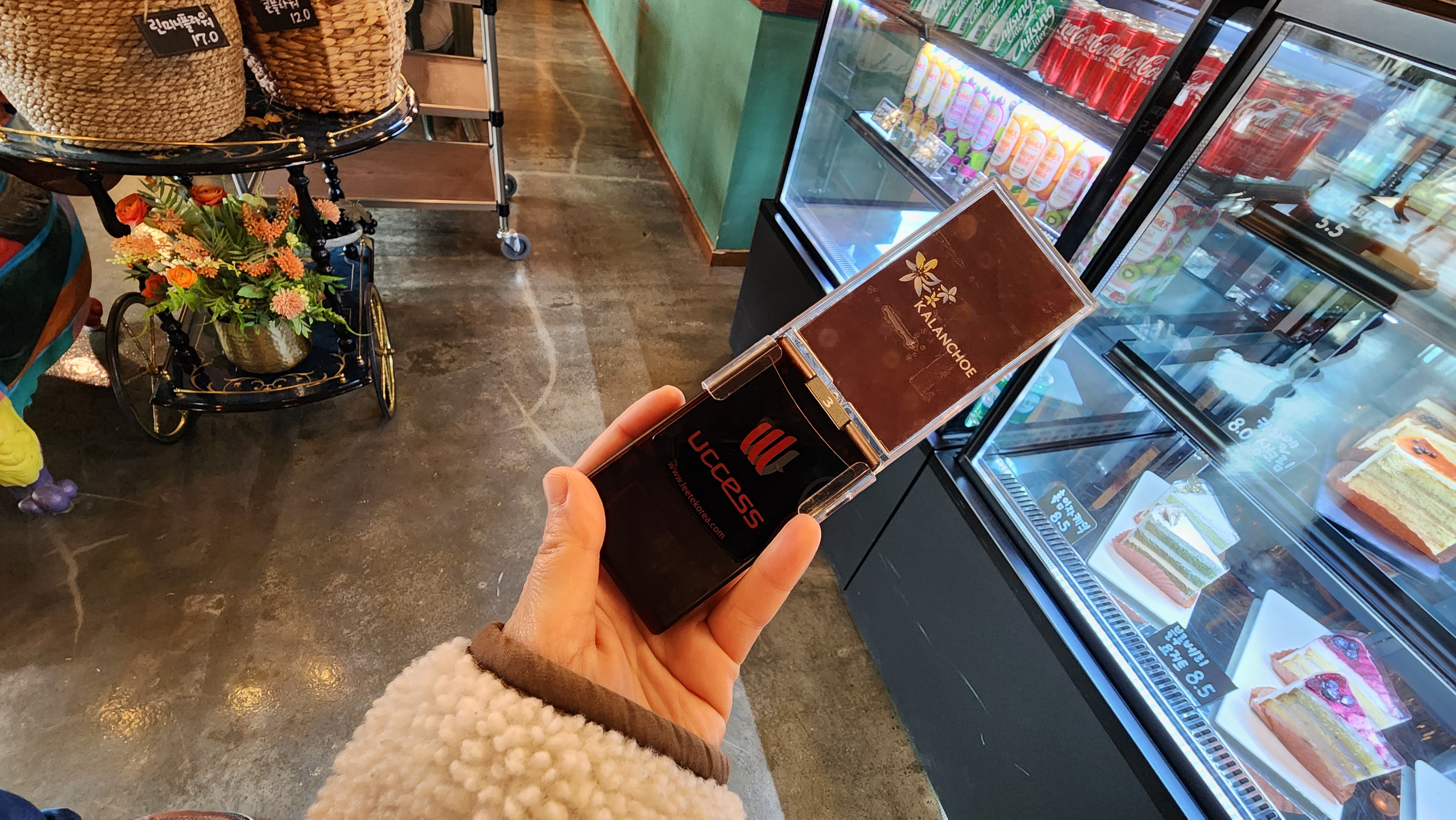 주문하면 이렇게 진동벨을 주시는데 메뉴가 준비되면 카운터로 가지러 와야해요.