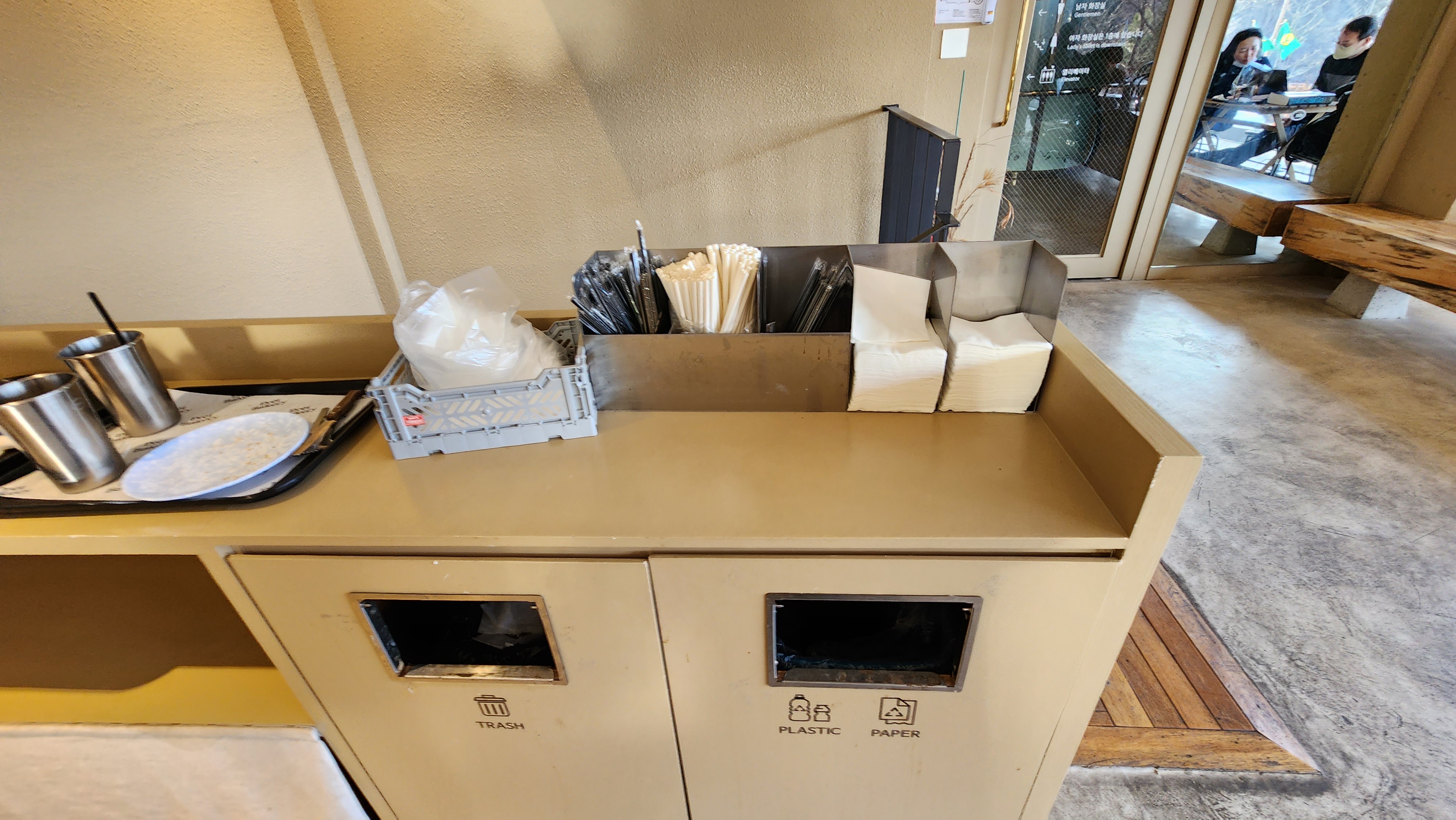 서비스 코너에 냅킨, 빨대 등은 구비 되어있었고 음수대도 있더군요.