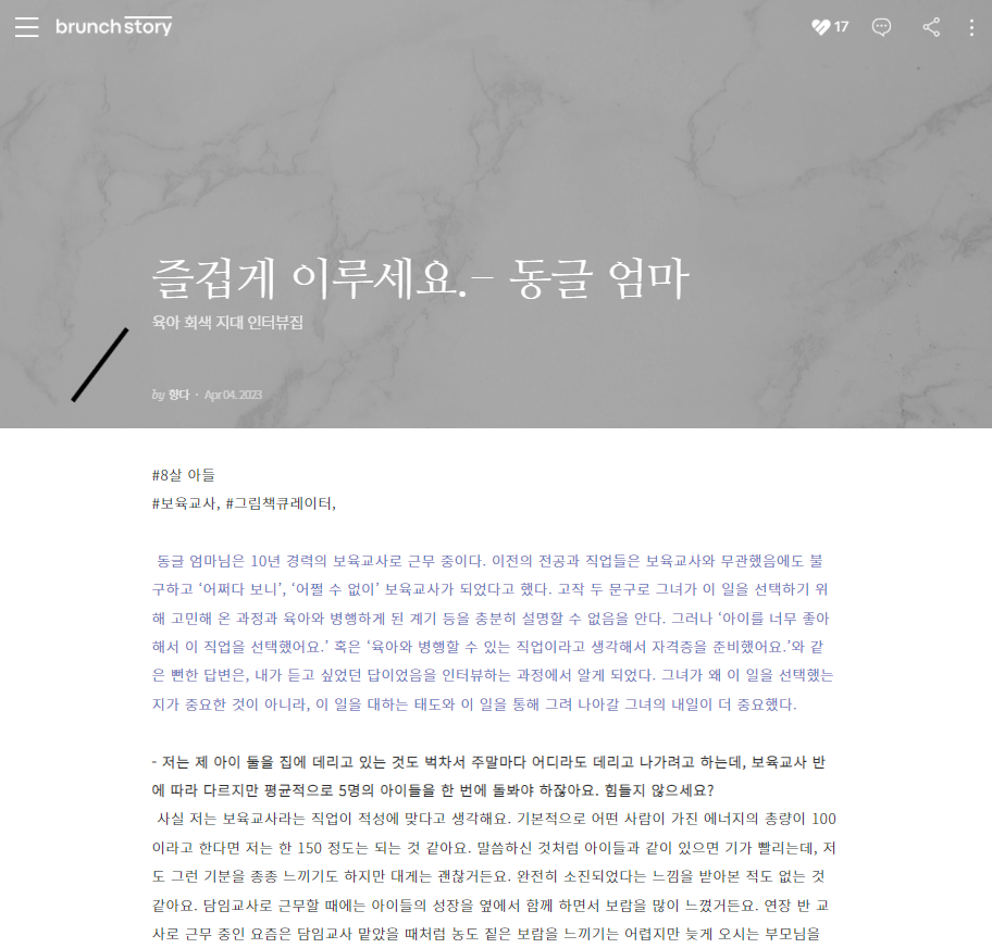 [ 브런치 작가와의 인터뷰 ] 육아 회색지대 인터뷰집 <즐겁게 이루세요-동글엄마>편 본문