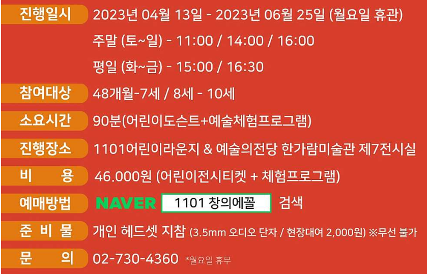 1101 창의에꼴 검색 후 네이버 예약을 했구요, 예술의전당 내에 위치한 1101 어린이라운지 로 가서 대기했어요.