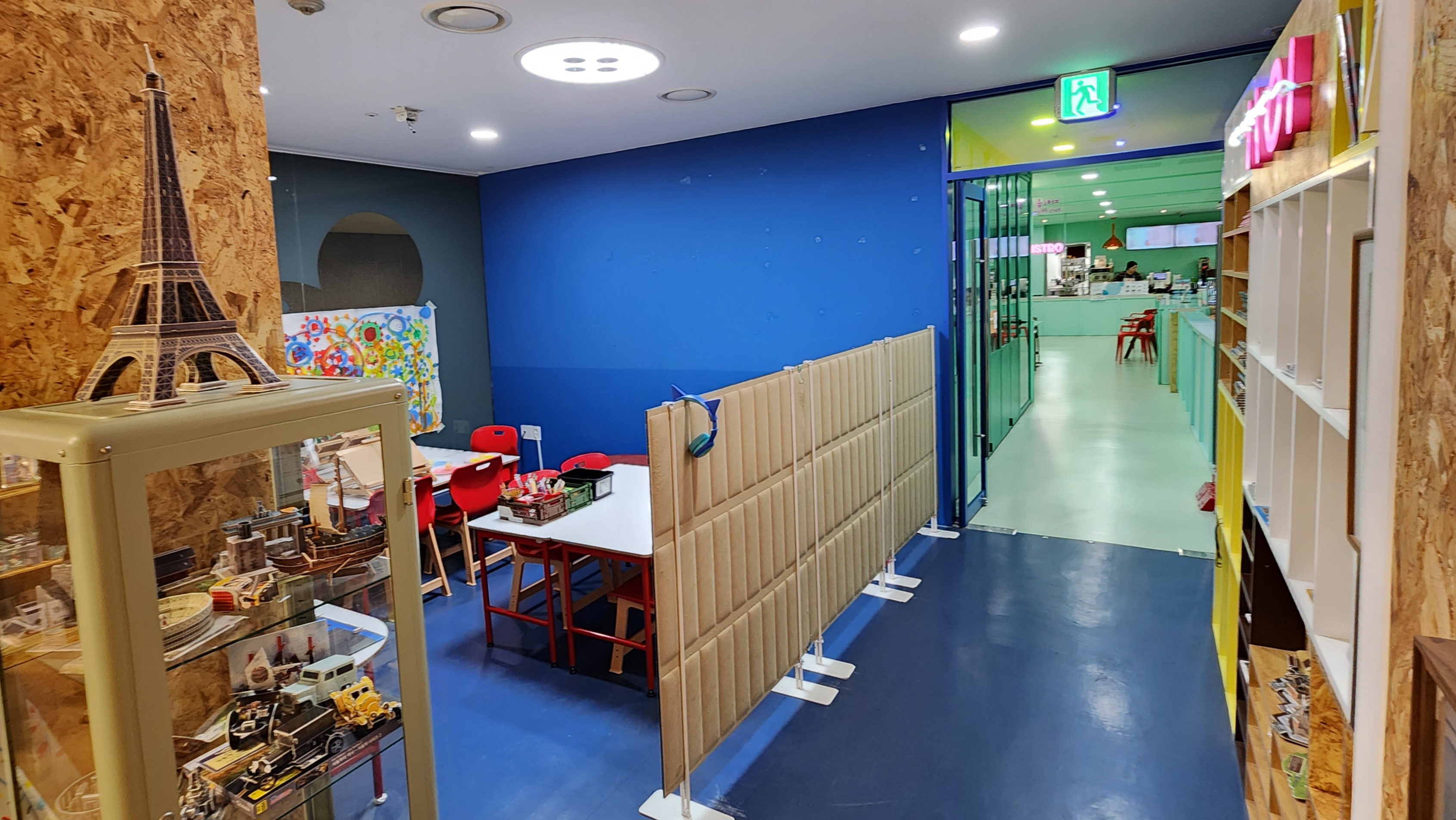 동글이는 라운지 들어가기 전에 있는 파란 공간에서 연계 프로그램을 받았어요.