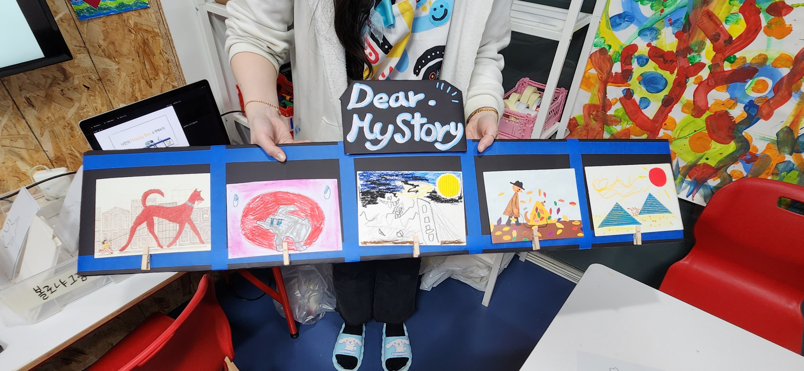 동글이가 전시를 보고 연계해서 활동한 내용을 선생님께서 설명해주셨어요.