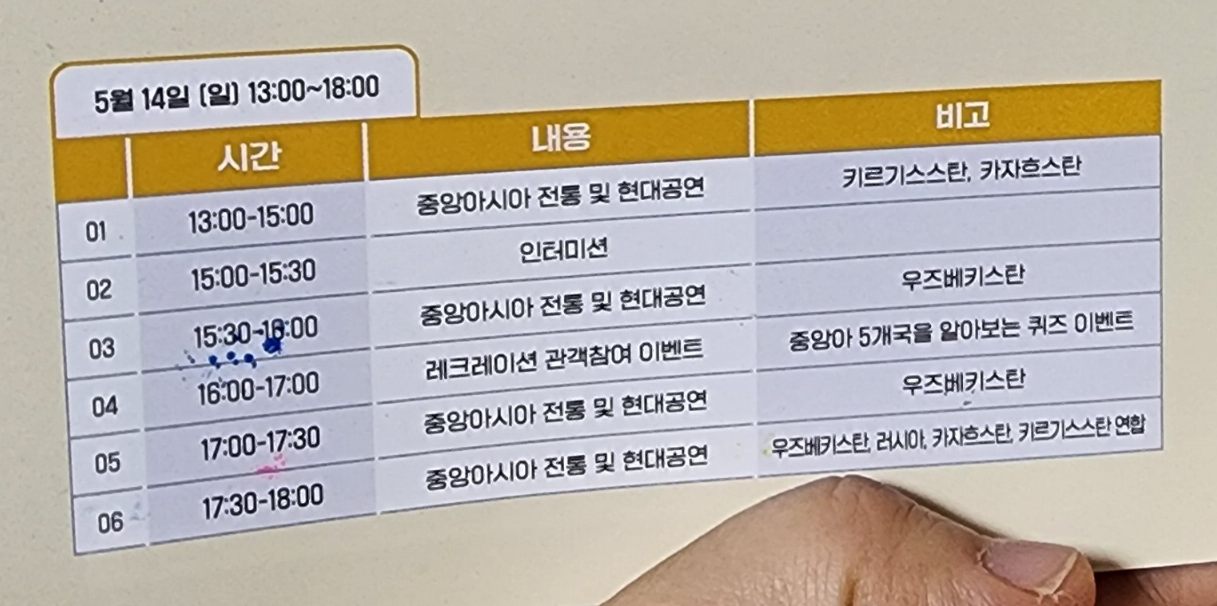 한국국제교류재단과 한-중앙아협력포럼사무국 주최로 진행되는 이 행사는 중앙아시아의 다양한 국가들에 대해 알아볼 수 있고, 재미난 체험부스들이 있어 볼거리, 즐길거리 들이 갖춰져 있더군요.