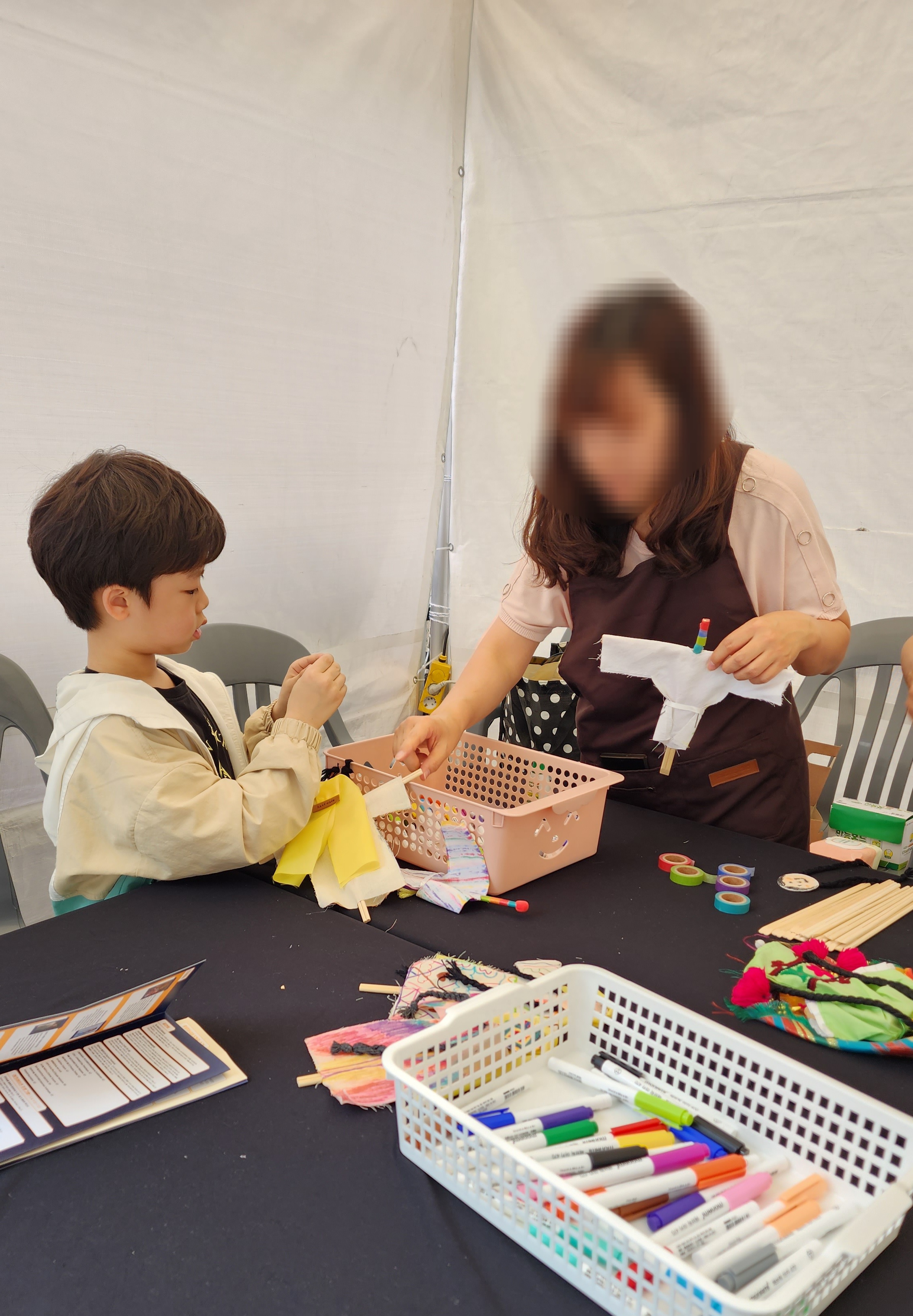 국립아시아 문화전당부스에서는 책갈피도 만들고 종이 인형도 만들 수 있었어요.