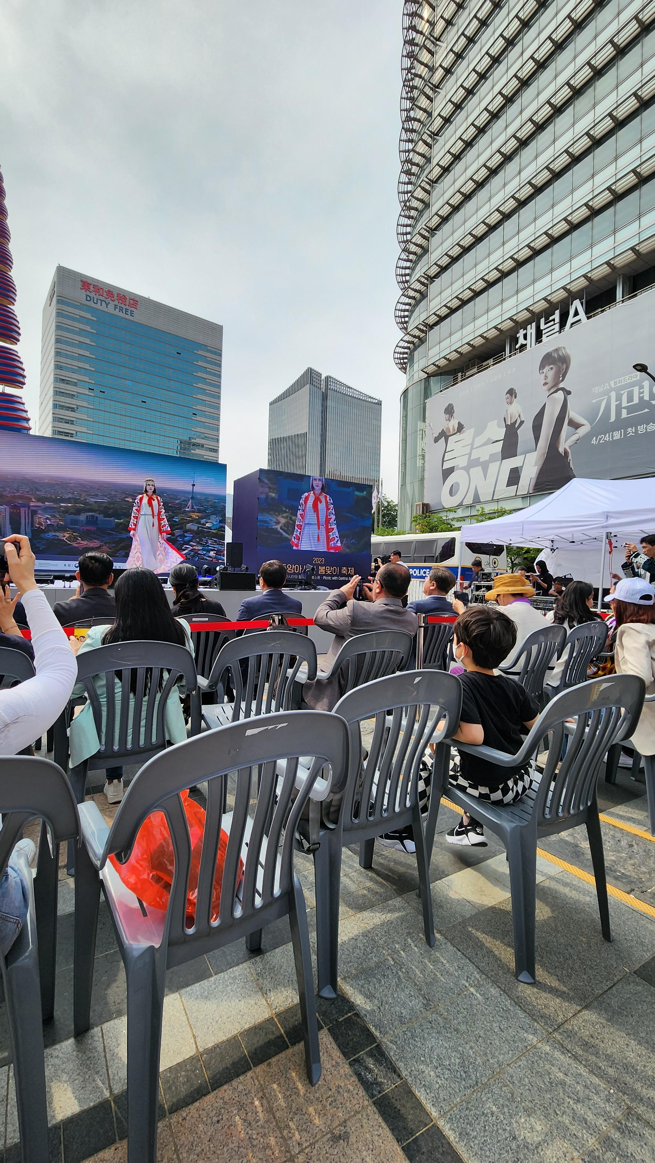 동글이랑 같이 패션쇼를 관람했는데요 멋진 모델들의 워킹과 더불어서 중앙아시아 디자이너들의 작품들을 보는 재미가 쏠쏠했어요.
