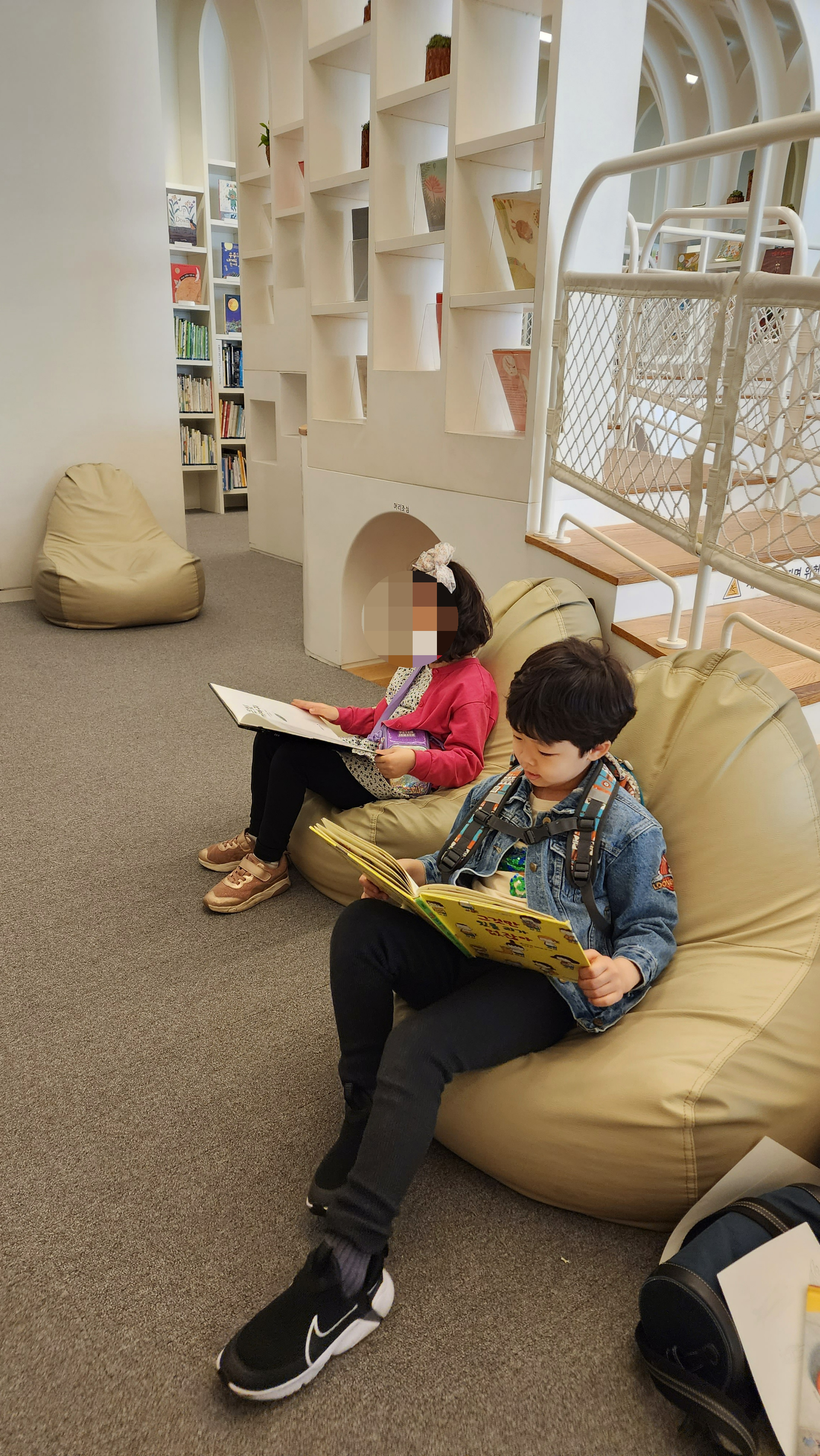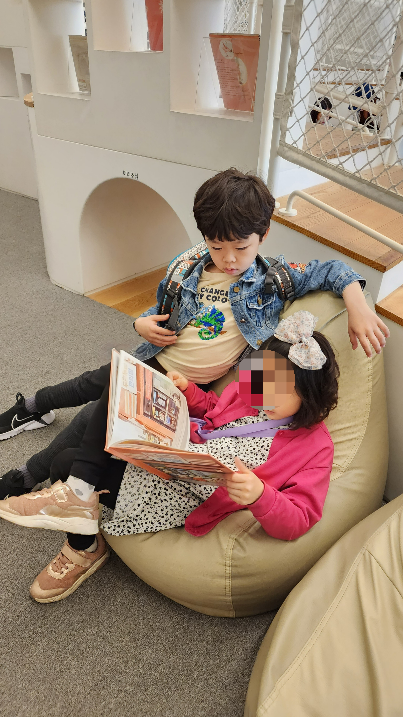 전시 관람 끝나고 나면 열린서재 빈백에 앉아 그림책 신나게 읽다 오는 즐거움도 있어요.