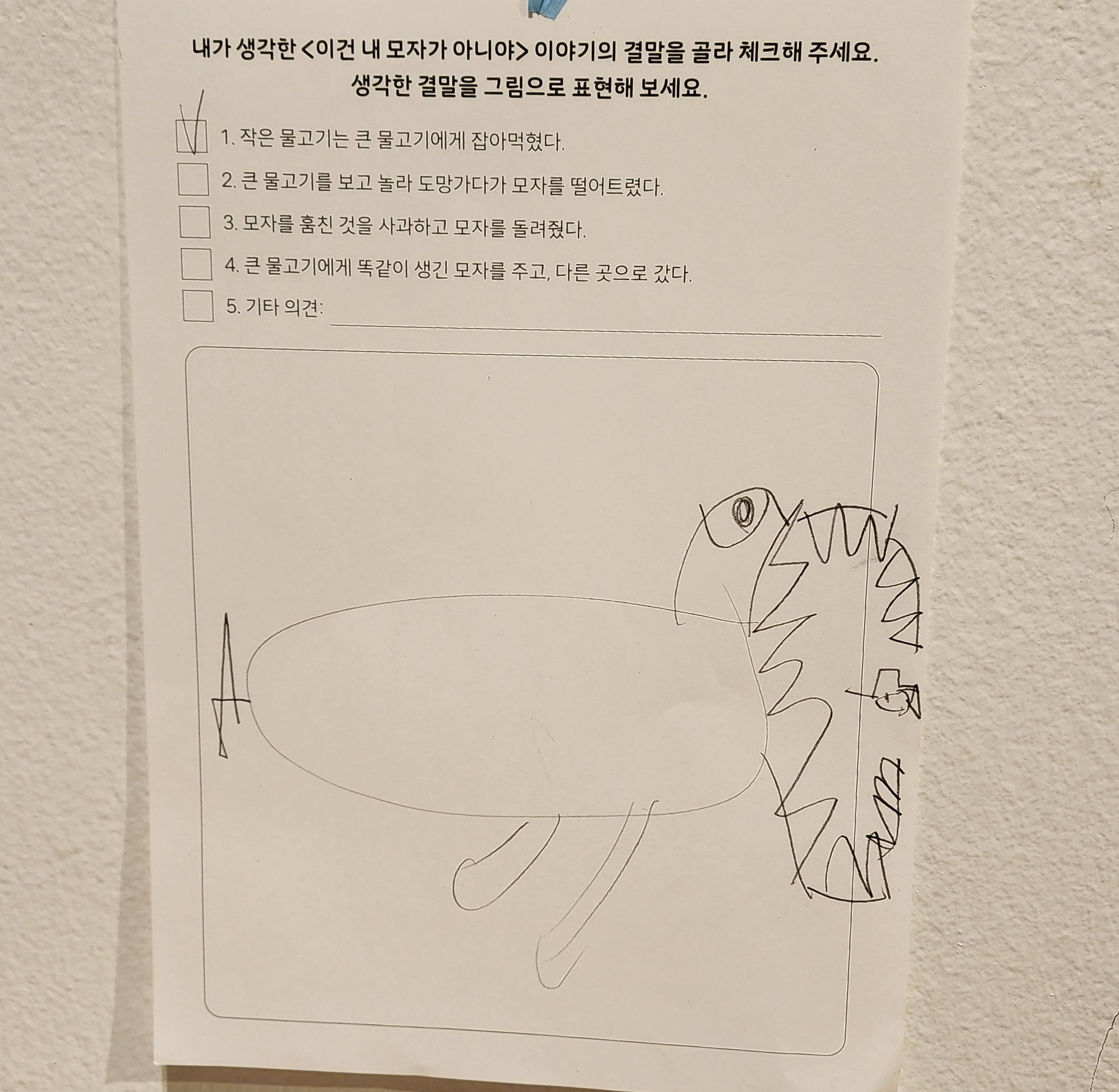 <이건 내 모자가 아니야>에서 나오는 하늘색 모자까지 하나씩 써보는 재미가 쏠쏠 하더군요.