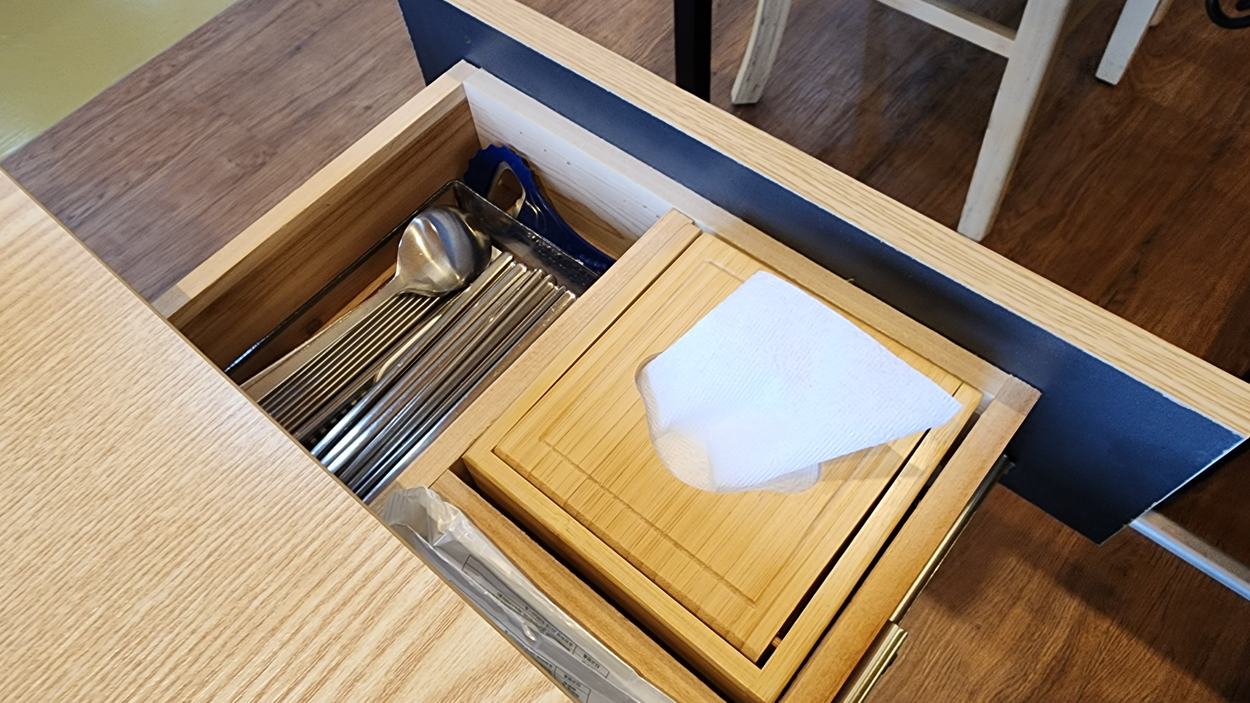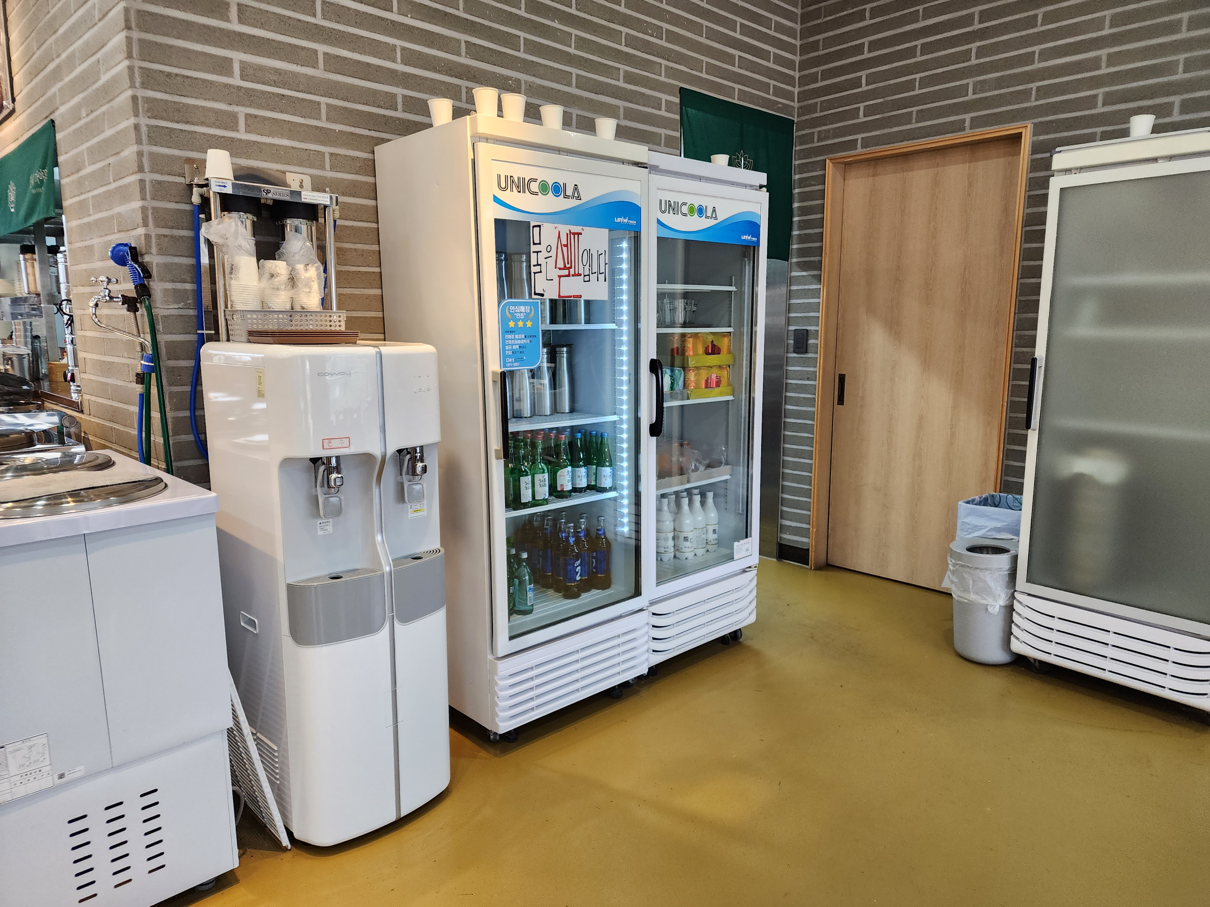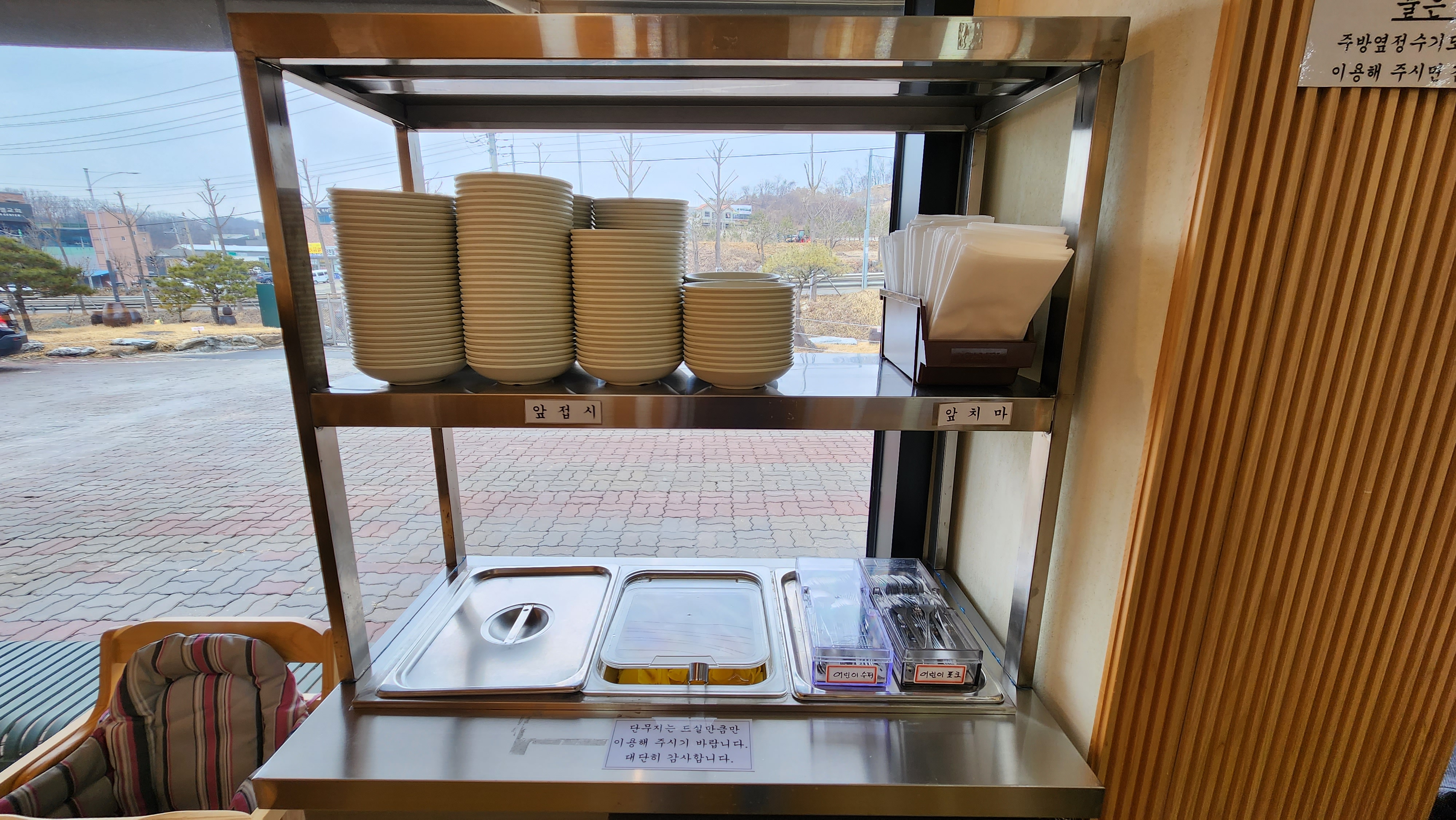 음식 나오기 전에 온육수 한모금 마시면서 서랍 열어 식기부터 챙겨뒀네요.