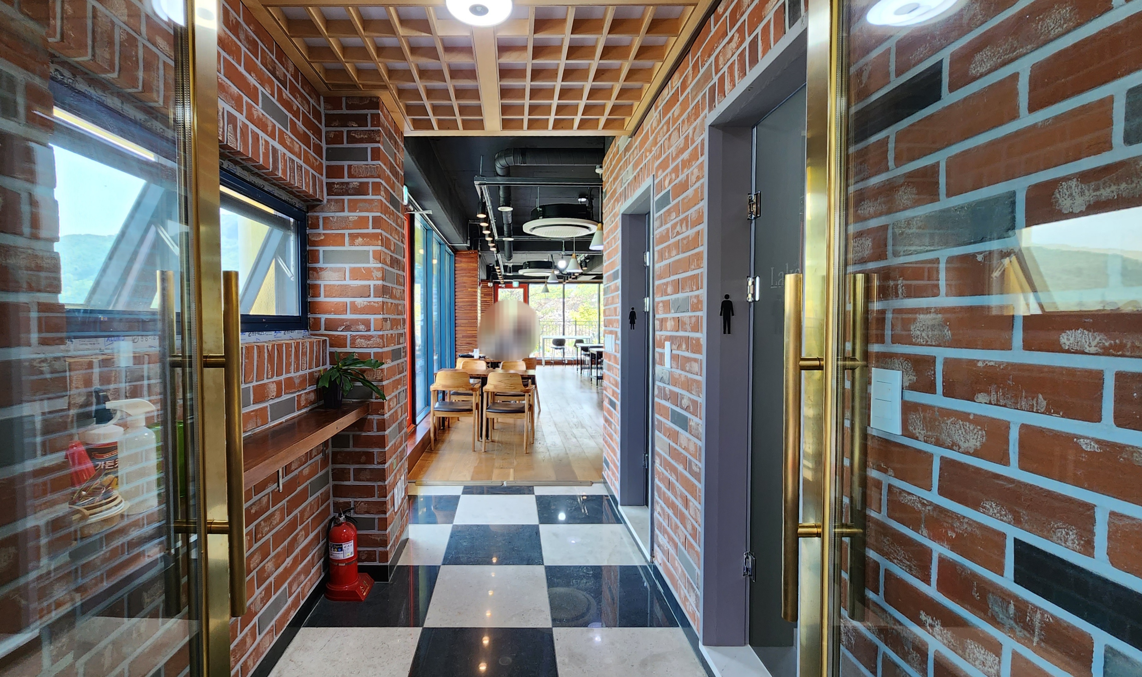 낙생저수지가 근교에 있지만 카페에서는 잘 보이지 않아요.