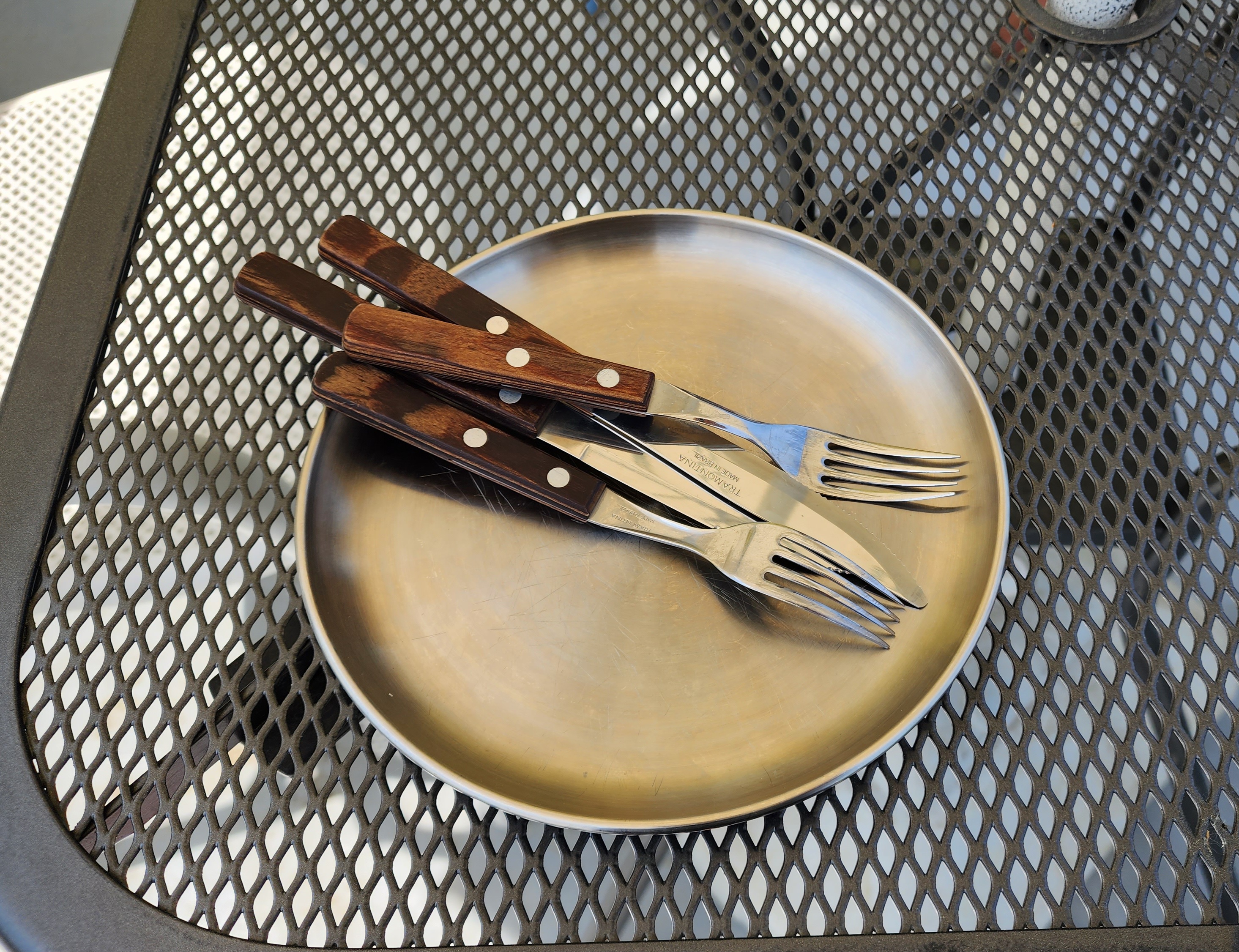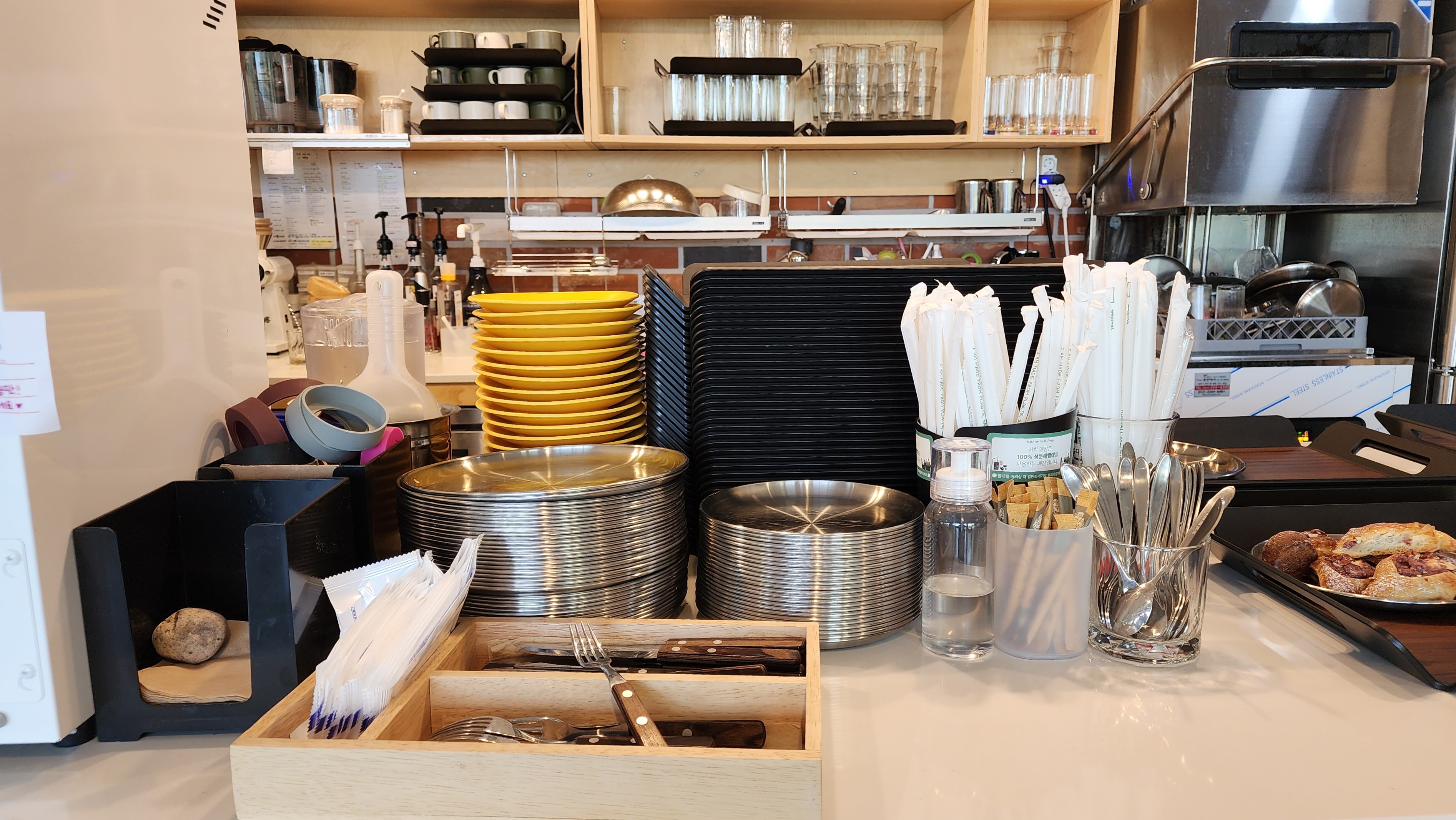 서비스코너에서 나이프와 포크, 접시 등은 챙겨왔어요.