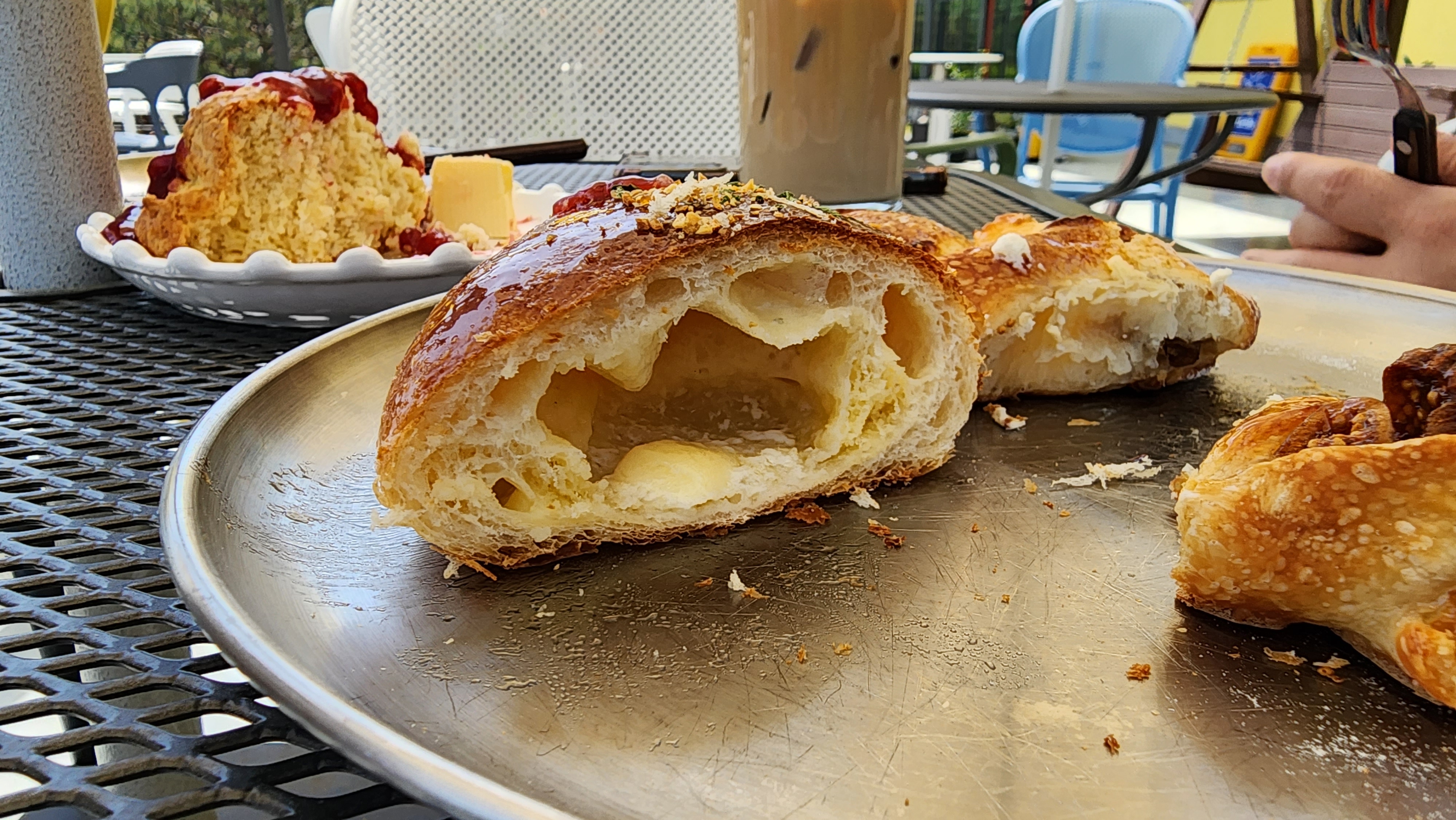 고르곤졸라 소금빵은 안에 고르곤졸라 치즈가 들어있는데 빵에 달짝지근하게 코팅이 되어있어 맛이 매력적이었어요.