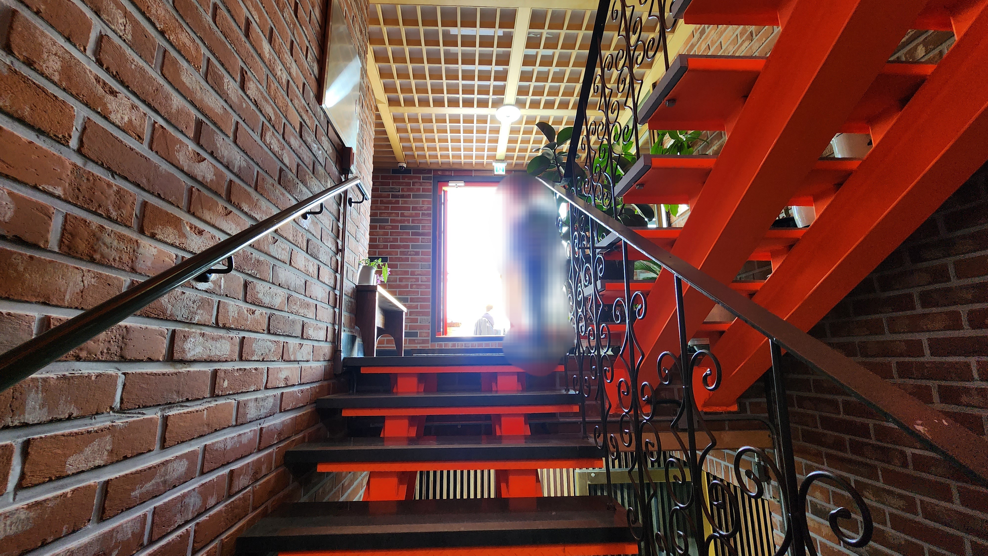 계단을 올라가면 2층과 루프탑으로 갈 수 있어요.