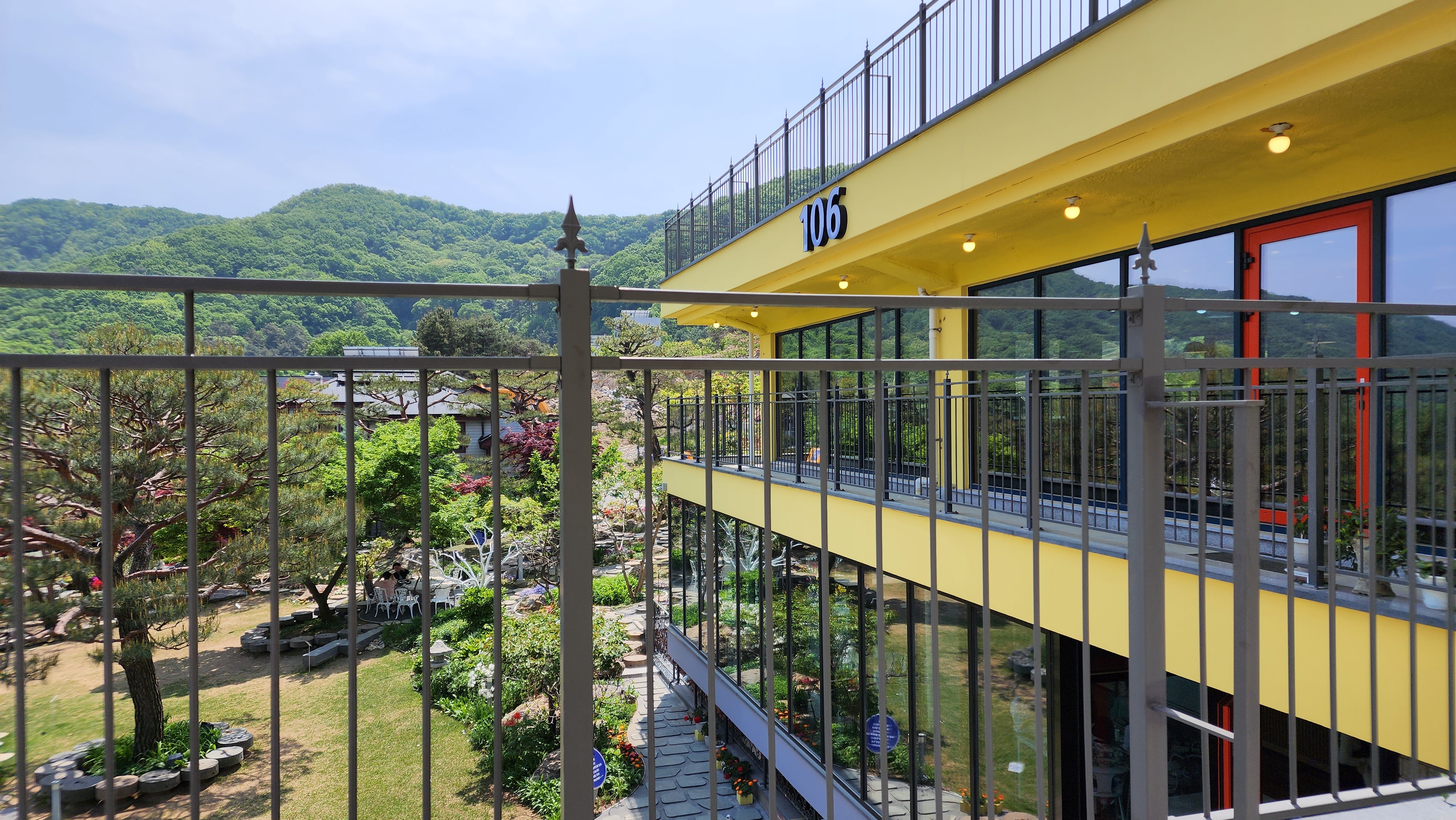 루프탑에서 정원을 한눈에 볼 수 있었어요.