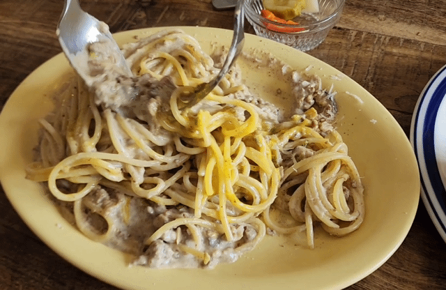 라구 비앙코를 두번 주문했는데 처음에 주신건 노른자가 터져서 왔지만 다음에 주신 파스타는 노른자가 치즈가루에 가려졌네요.