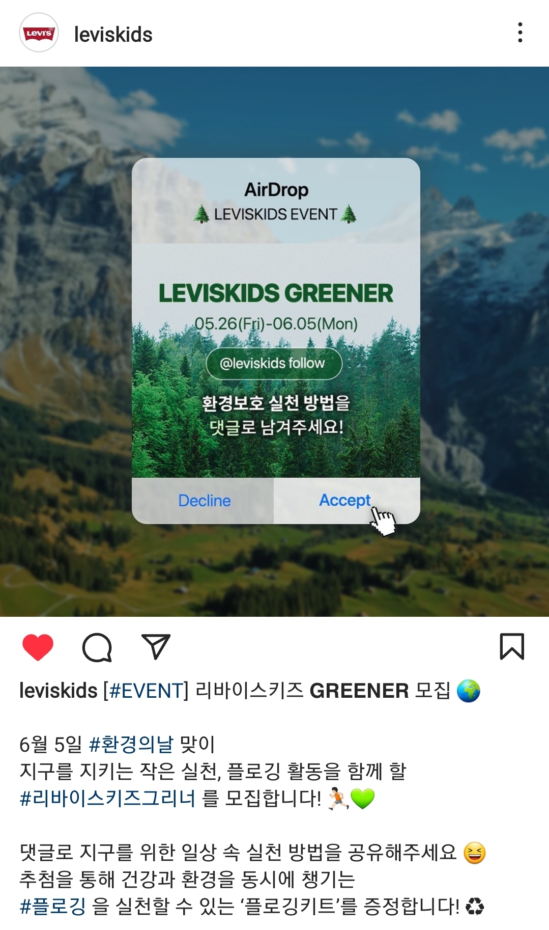 리바이스키즈에서 플로깅을 함께할 리바이스키즈 그리너 를 모집했었답니다.