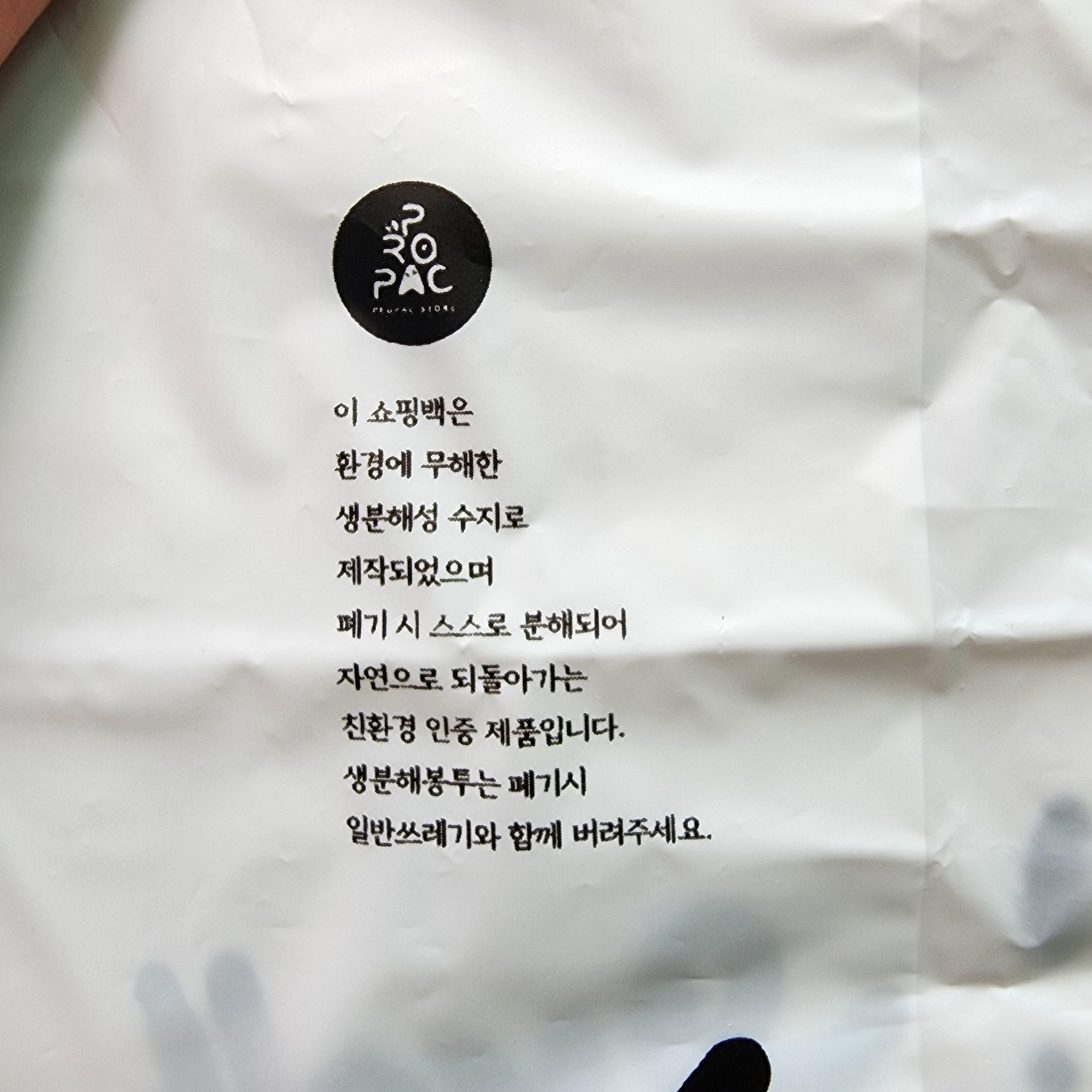아니 환경을 생각한다면서 비닐봉지를 주나? 했는데 생분해성수지로 제작된 친환경 인증 제품인 생분해봉투 더군요.