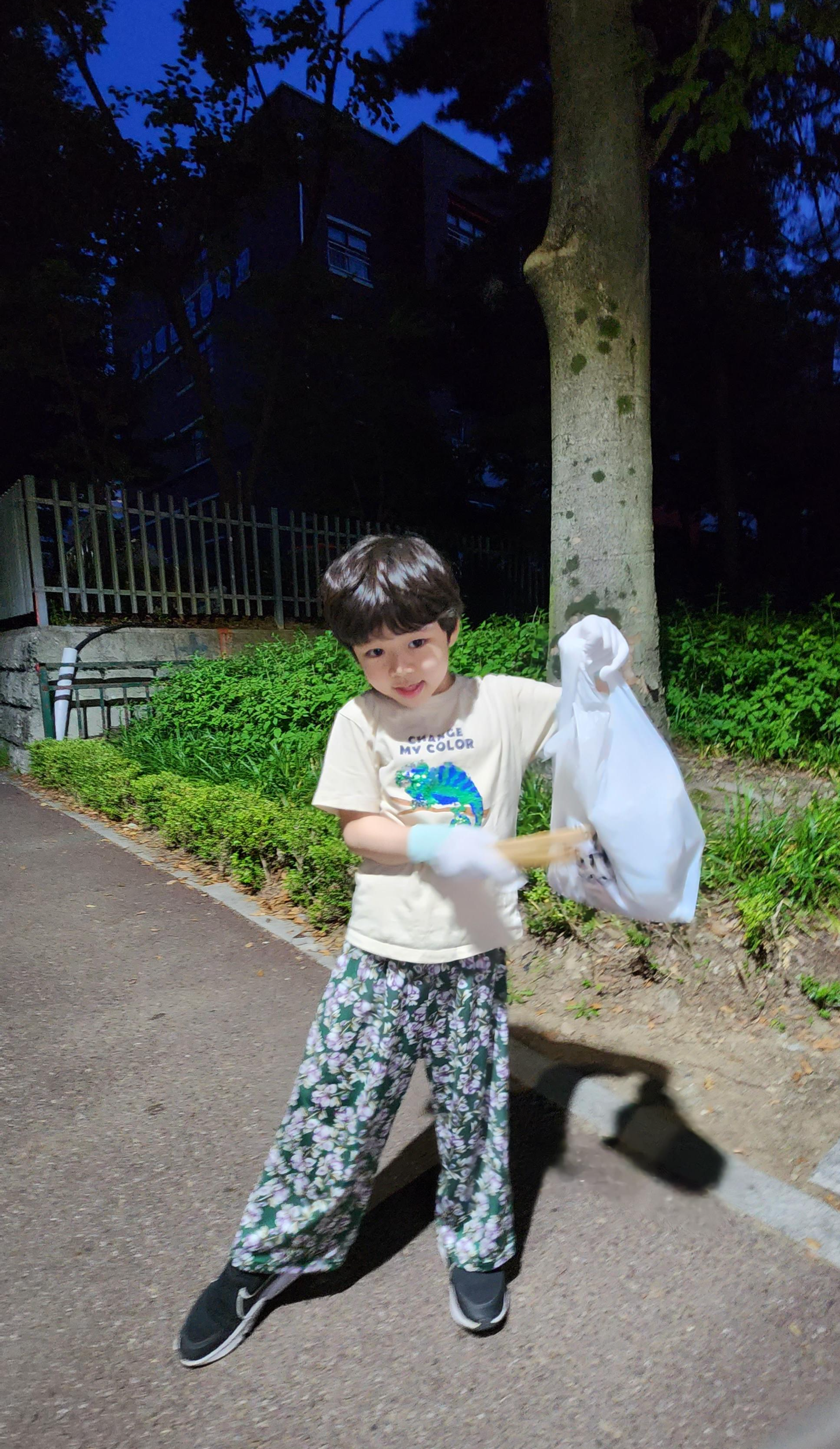 쓰레기를 주워서 동네가 깨끗해지는게 기분이 좋다며 신난 동글이예요.