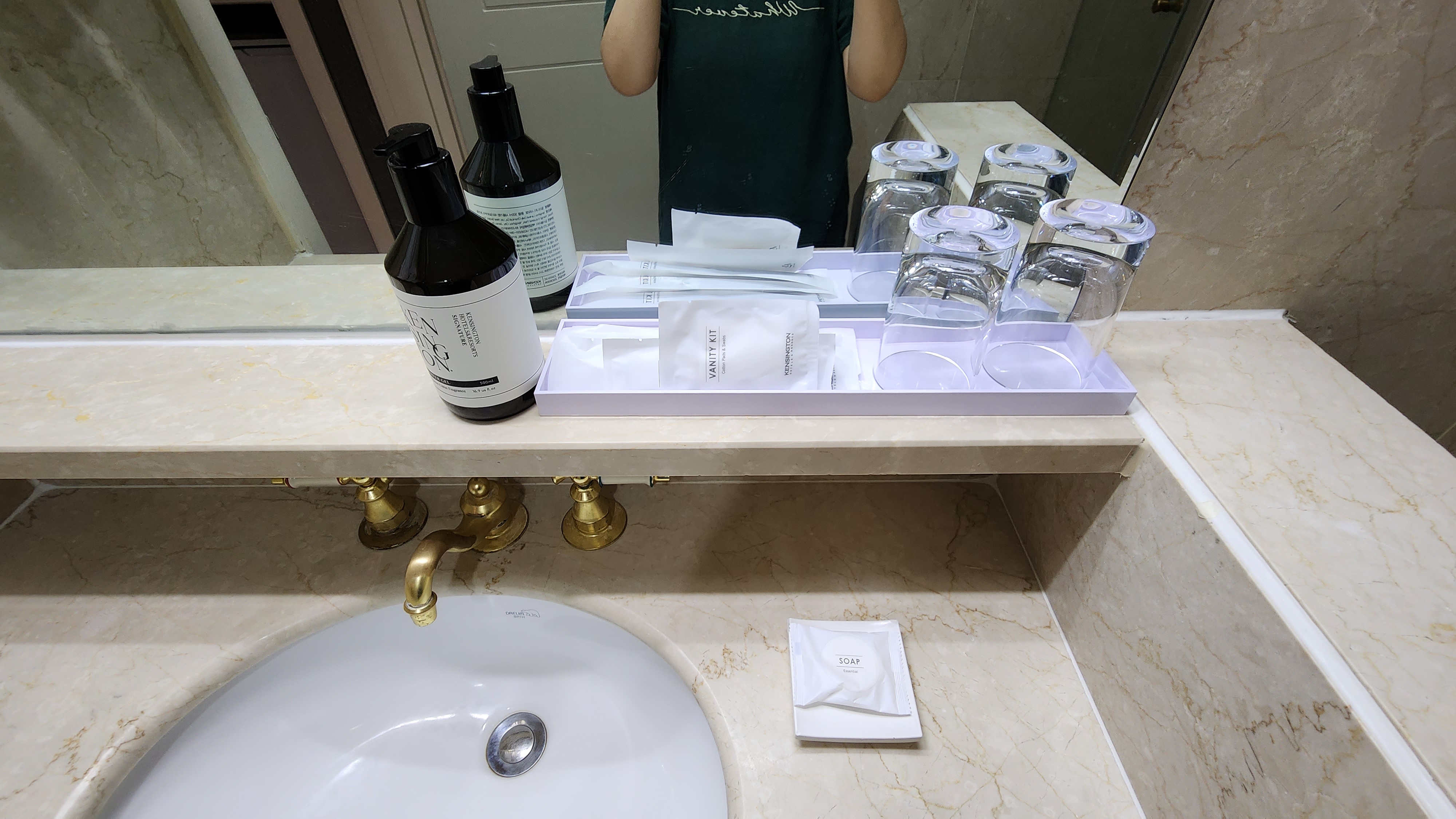 화장실에 욕조, 샤워부스가 있었고 샴푸, 린스, 바스, 바디로션 등은 다회용이었지만 칫솔이나 화장솜 등은 일회용으로 준비되어 있더군요.