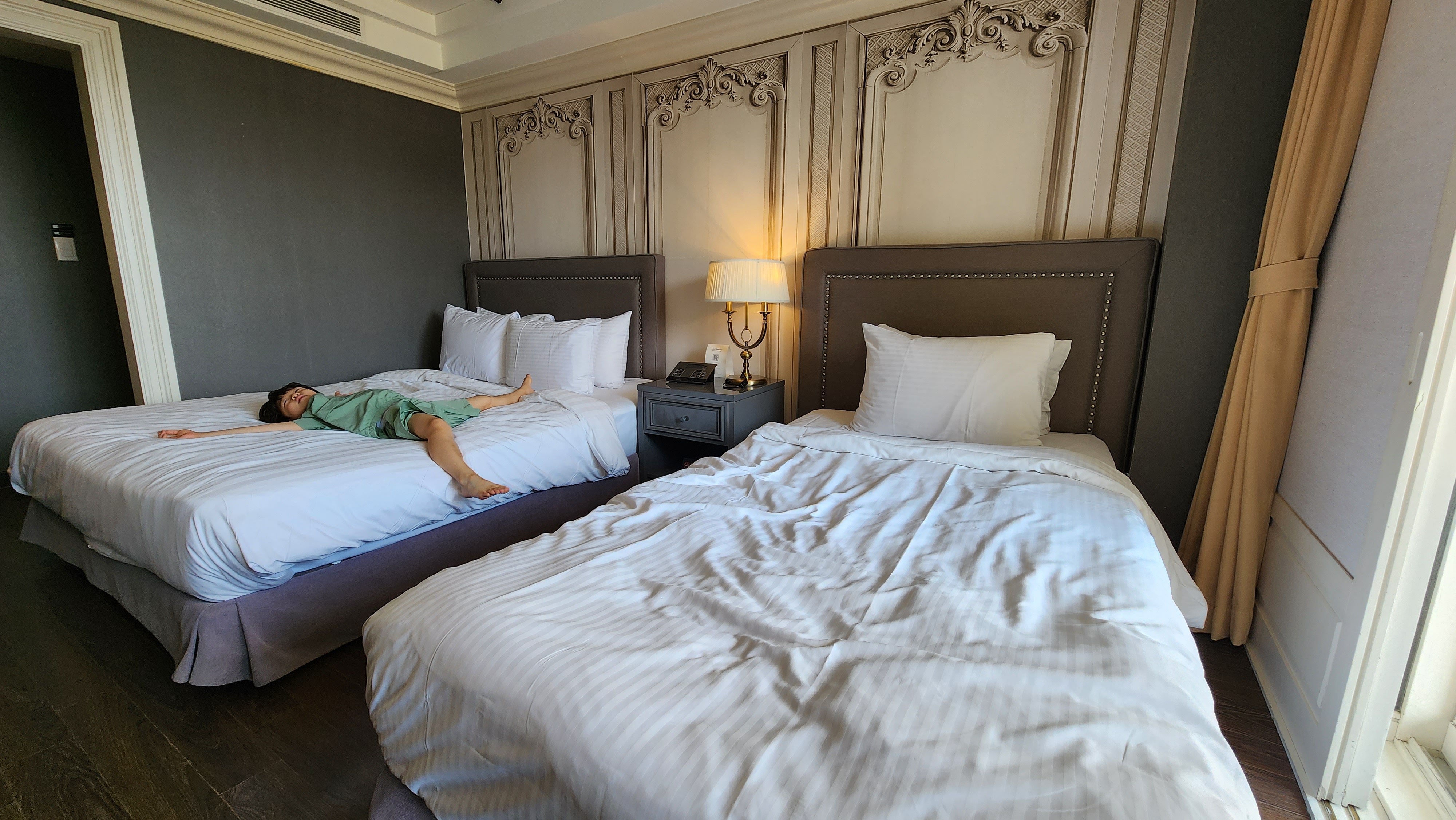 1인침대와 2인침대가 객실에 놓여있어서 3인 가족이 묵기에 안성맞춤이었어요.