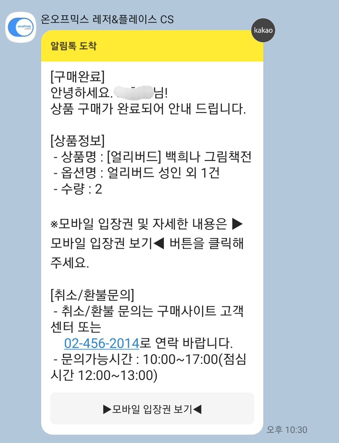 저는 인터파크에서 얼리버드 구매 했을 때 카카오 톡으로 링크를 받았어요.