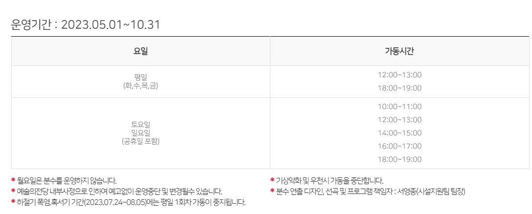 저는 분수가동시간 10분정도 남겨놓고 가서 14번, 15번 곡에 분수만 구경하고 왔어요.