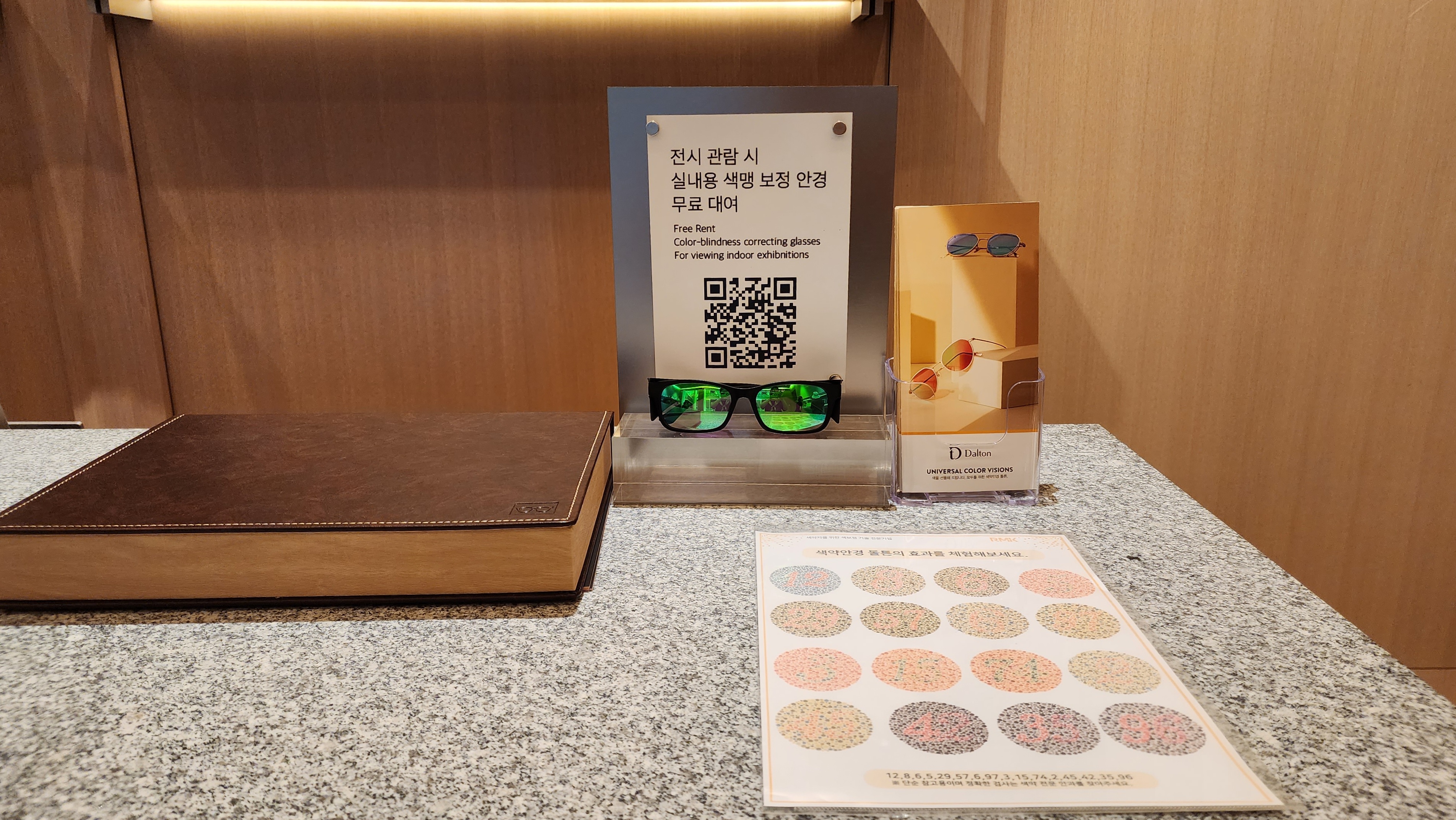 관람팁에 말씀 드렸던 오디오도슨트 다운 및 이용방법 안내를 받을 수 있고 색맹 보정 안경도 대여 할 수 있어요.