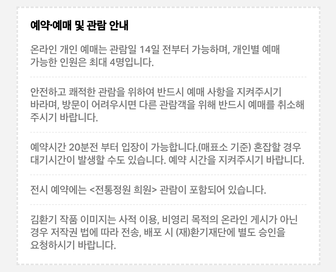 희원 설명은 화요일~일요일 13시, 15시에 운영되며 봄, 가을 성수기만 운영되고, 미술관 사정에 따라 변경될 수 있다고 해요.