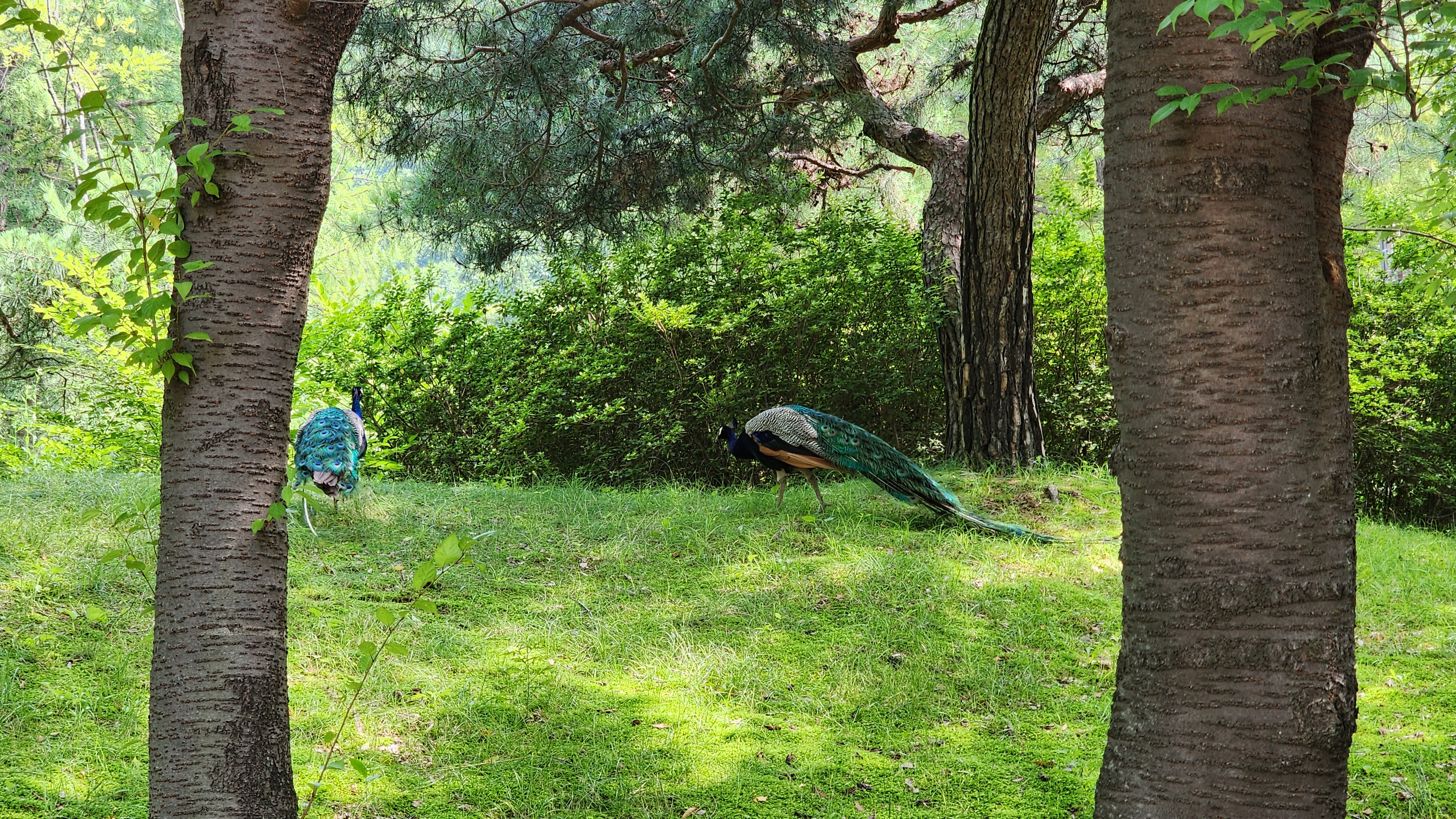 공작새가 너무 아무렇지도 않게 돌아다니고 있어서 정말 깜짝 놀랐어요.