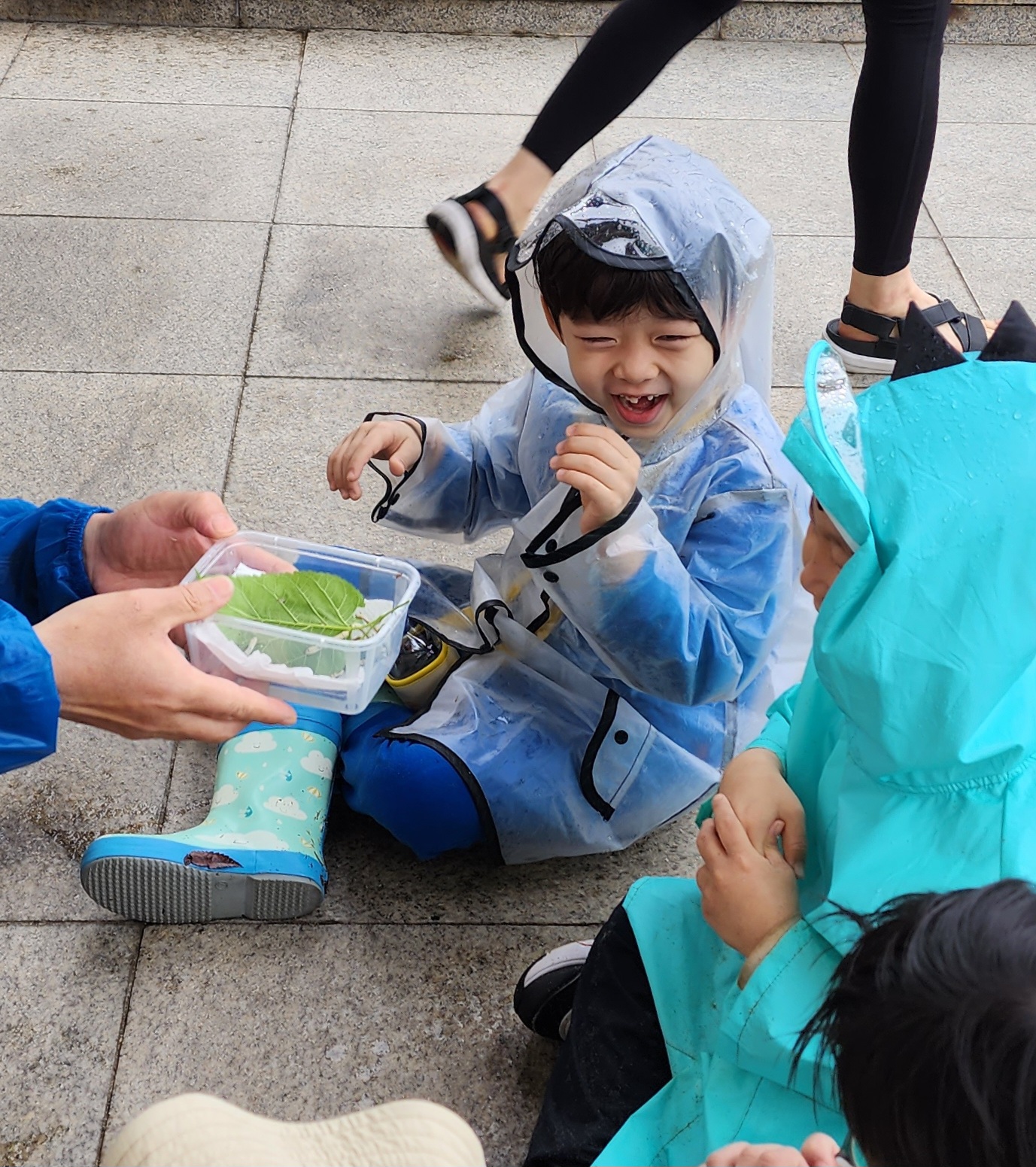 동글이는 우중 체험도 재밌었는데 뽕잎을 갉아먹는 누에를 직접 보고 관찰 할 수 있어 너무 즐거웠어요.