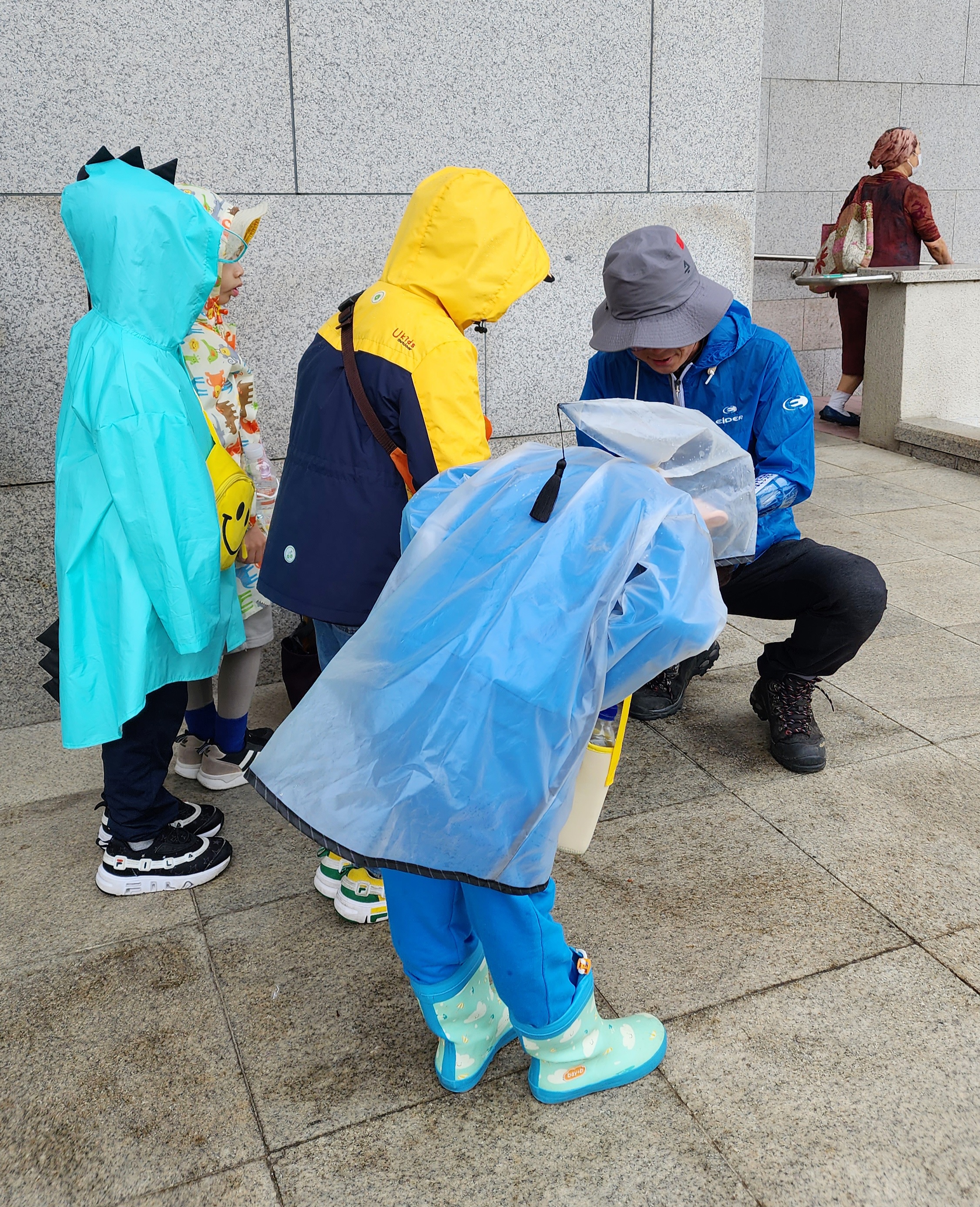 비옷 입었으니까 우산은 짐 될 것같아서 제가 챙기고 체험을 보냈네요.