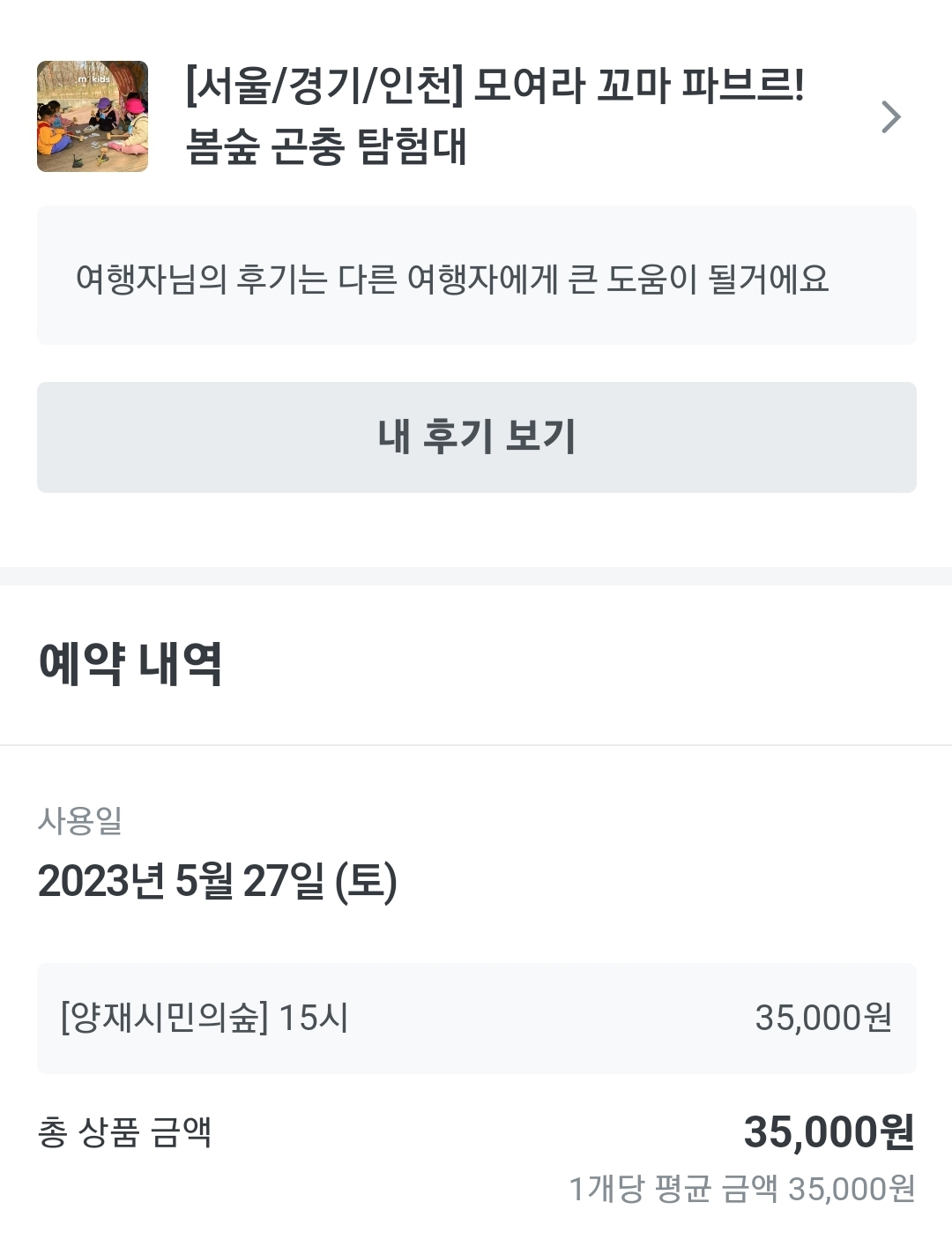마이리얼트립 어플에서 숲에온아이들 운영진의 프로그램을 예약했어요.