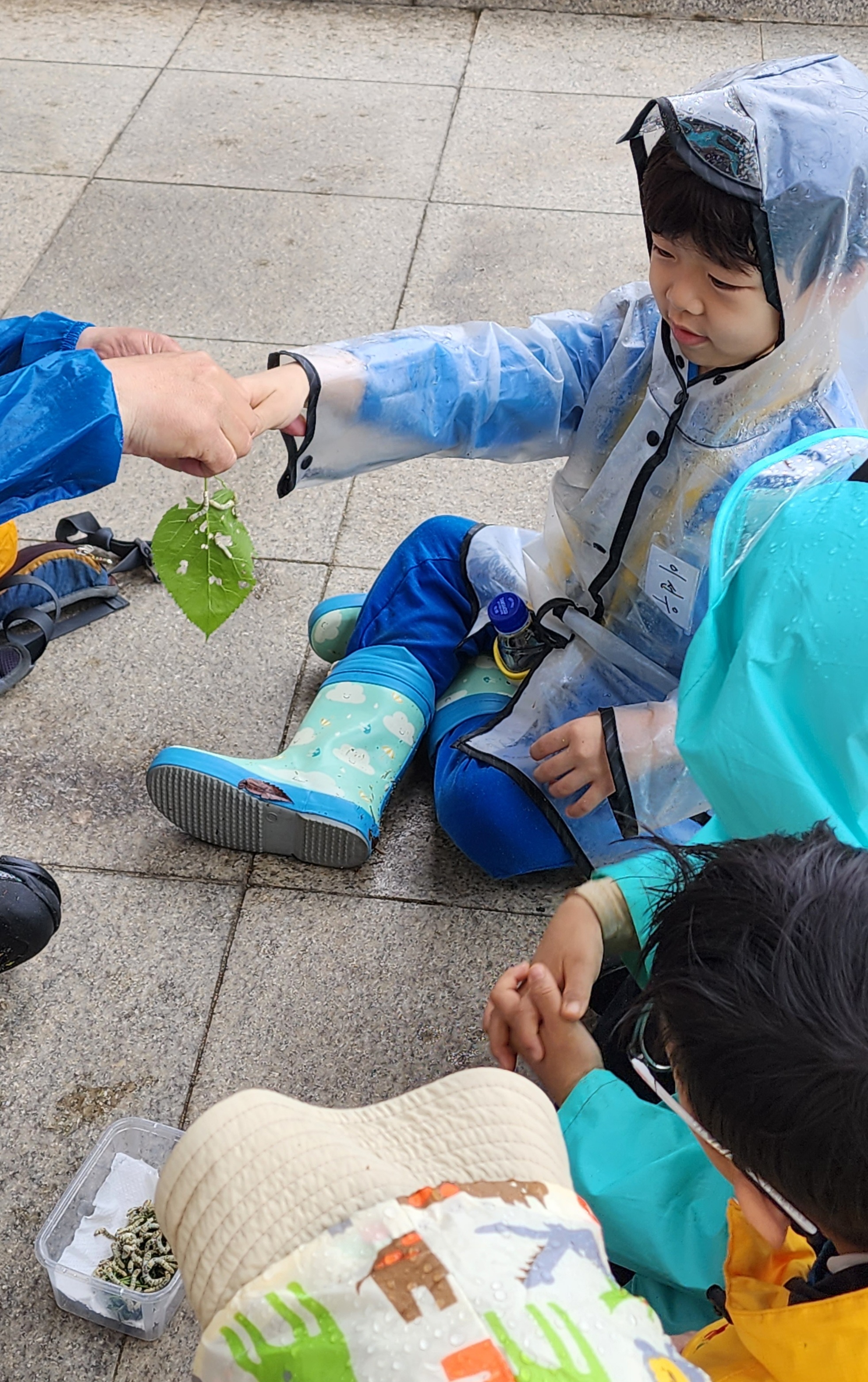 오늘의 요지는 비오는 날 숲체험이 생각보다 근사하고 재미있으니 너무 많은 비가 내리지 않는 다면 아이가 빗 속에서 체험을 해볼 수 있는 기회를 주시면 좋겠다고 추천해드려보아요.
