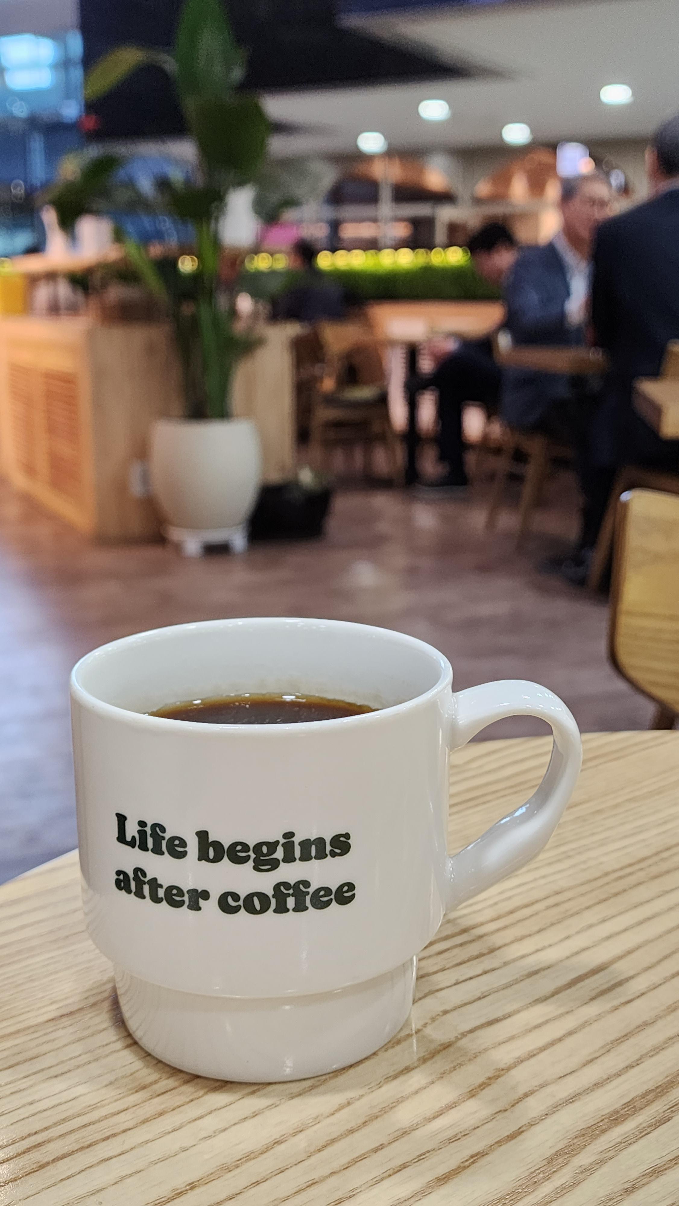 그나마 가까운 카페가 양재at센터 지하에 있어서 커피 한 잔 마시며 시간을 보냈어요.