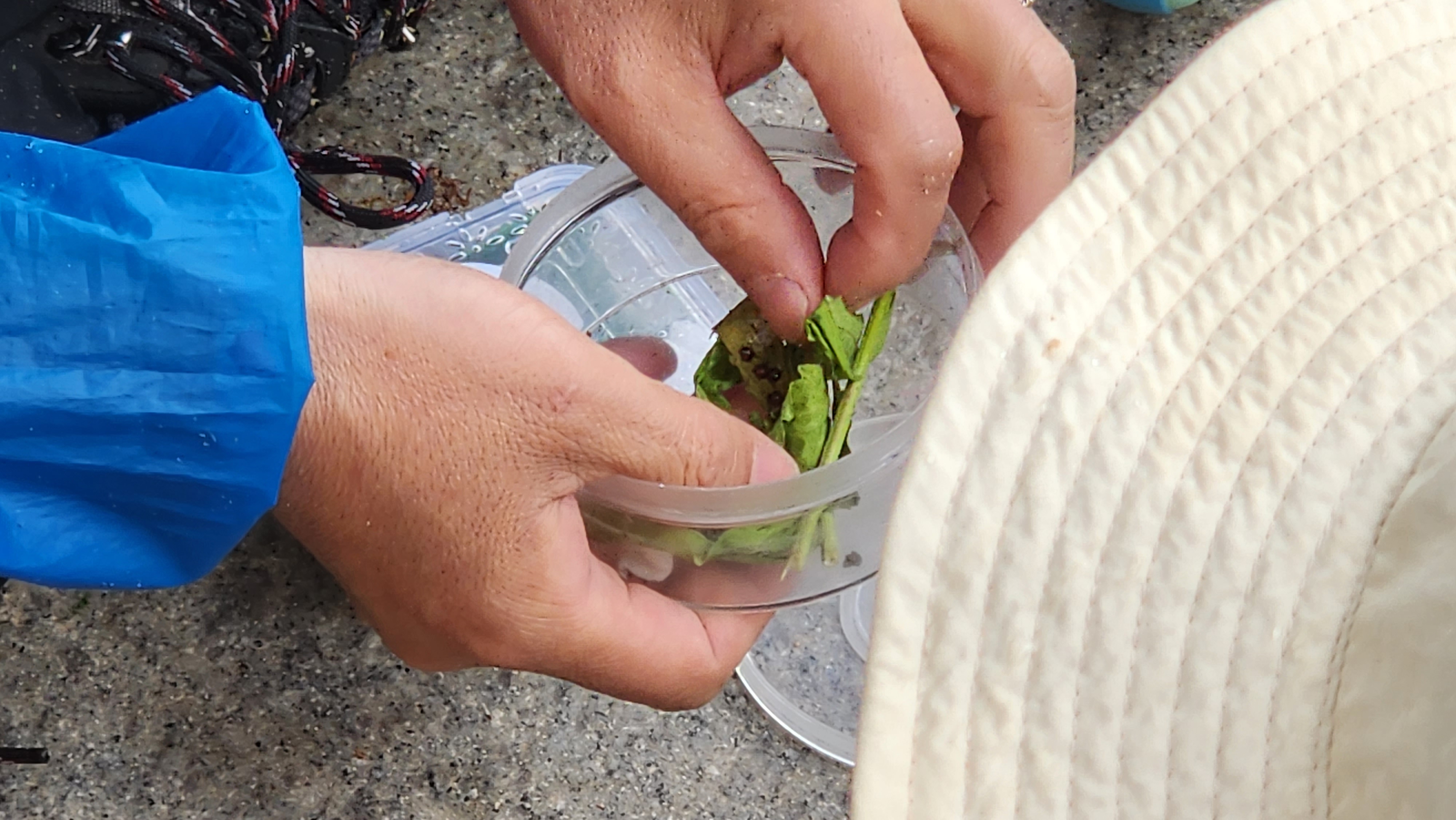 체험 끝날 무렵 맞춰 집합장소로 갔더니 동글이가 뭘 또 신나게 들고와서 보여주더라고요.