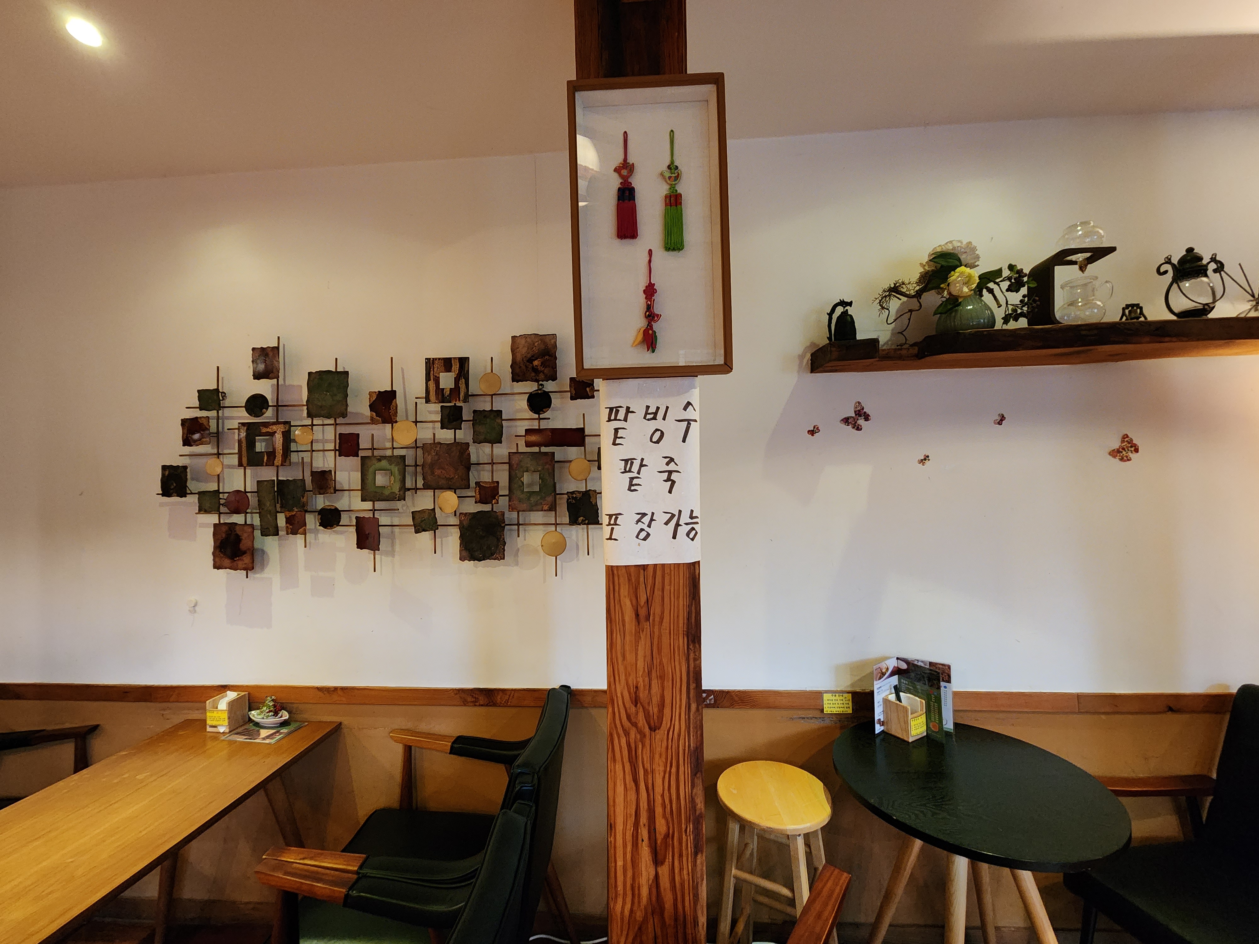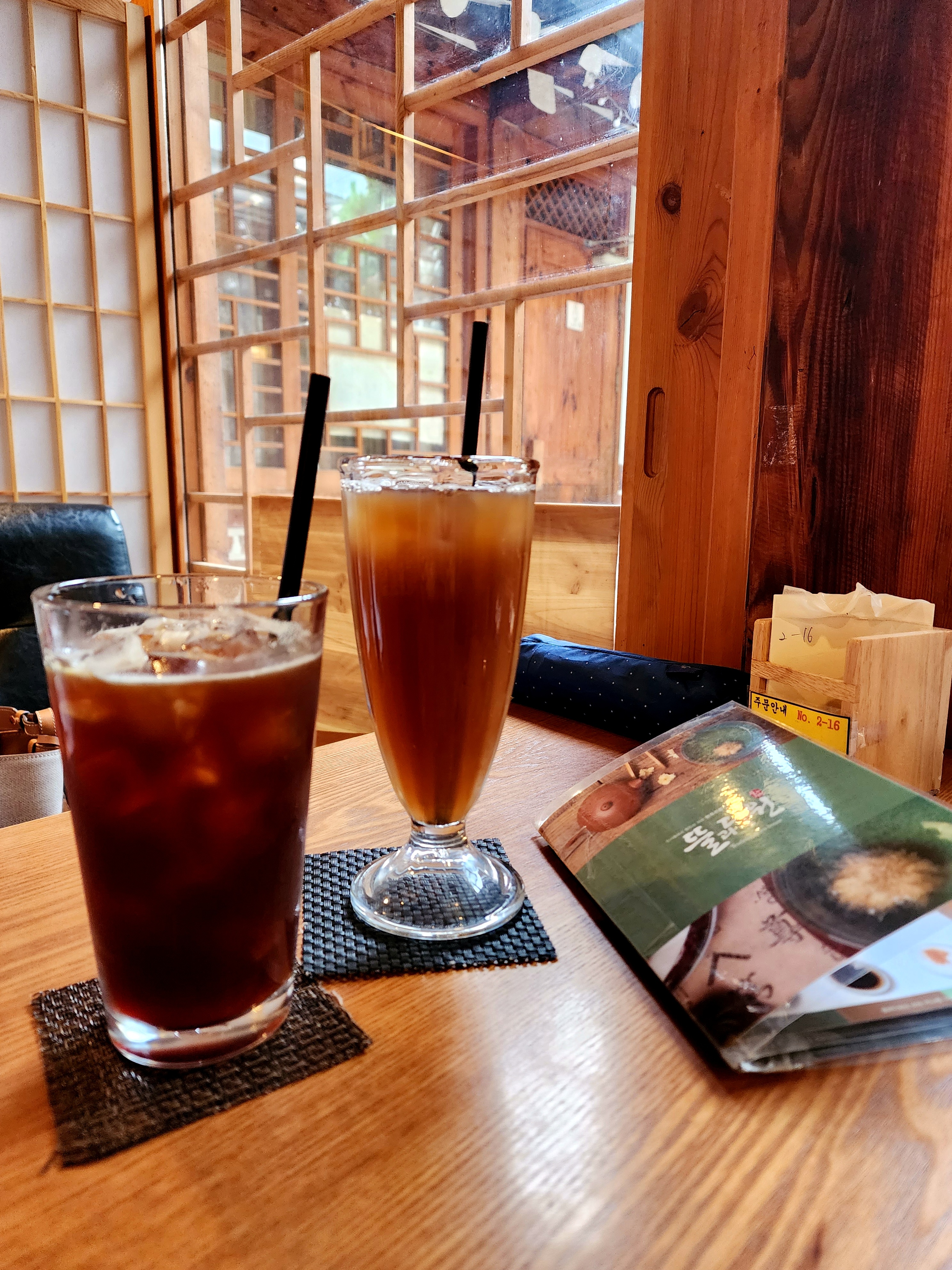 전통찻집에 왔으니 전통차는 하나 시켜봐야겠다며 수정과 시켰는데 아메리카노와 색깔이 구분이 잘 안되죠?