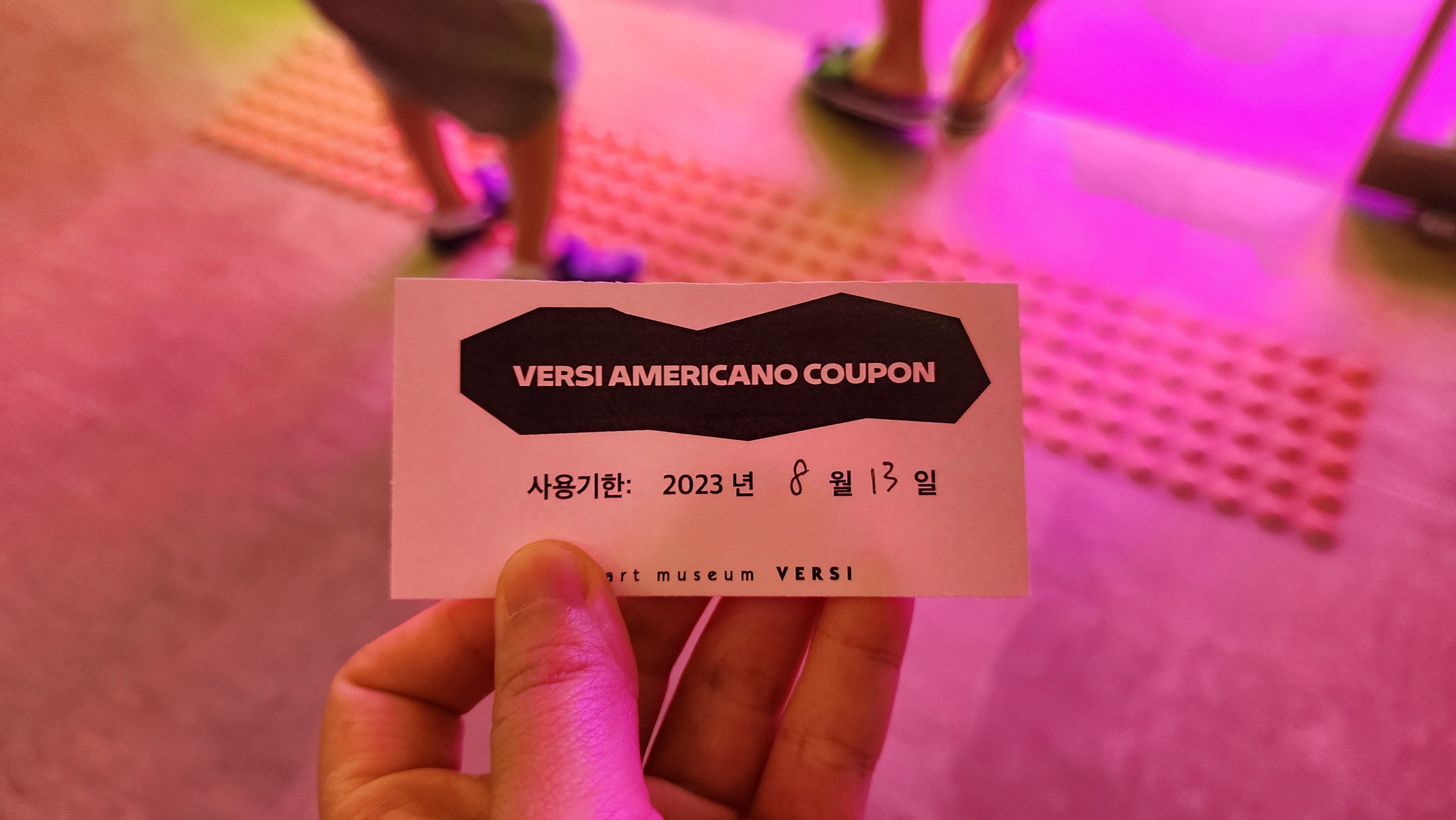 벗이미술관 전용 어플을 다운 받아서 관람하며 사용 후 어플만족도 평가를 하면 인포데스크에서 아메리카노 쿠폰을 주시더라고요. 쿠폰은 카페 벗이에서 사용할 수 있어요.