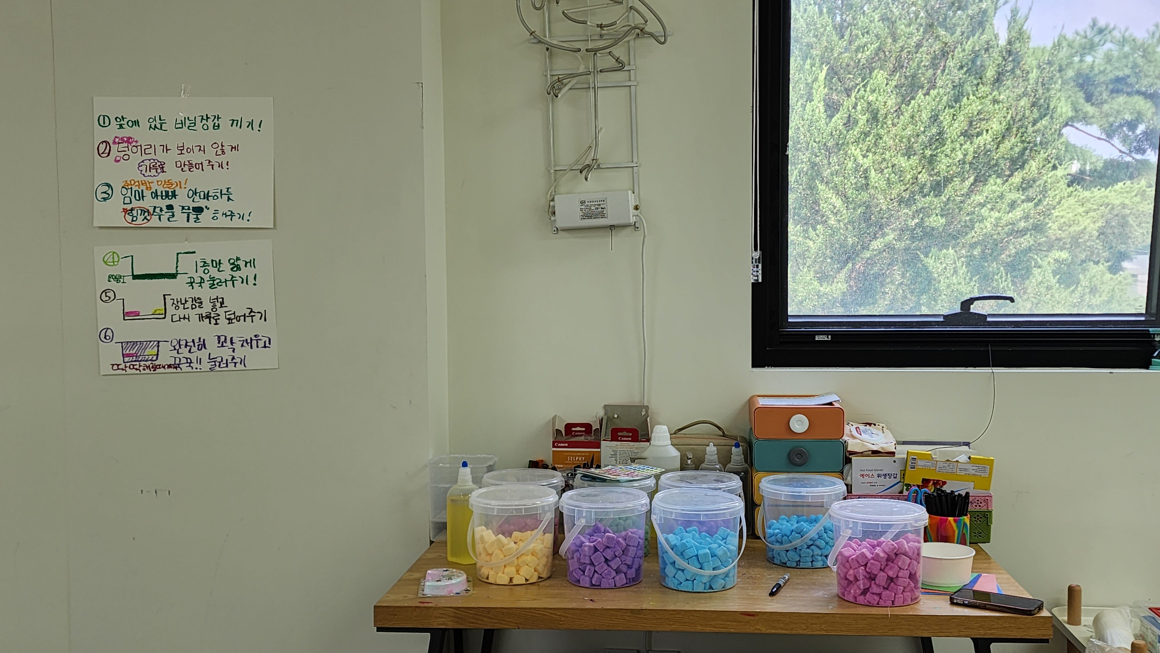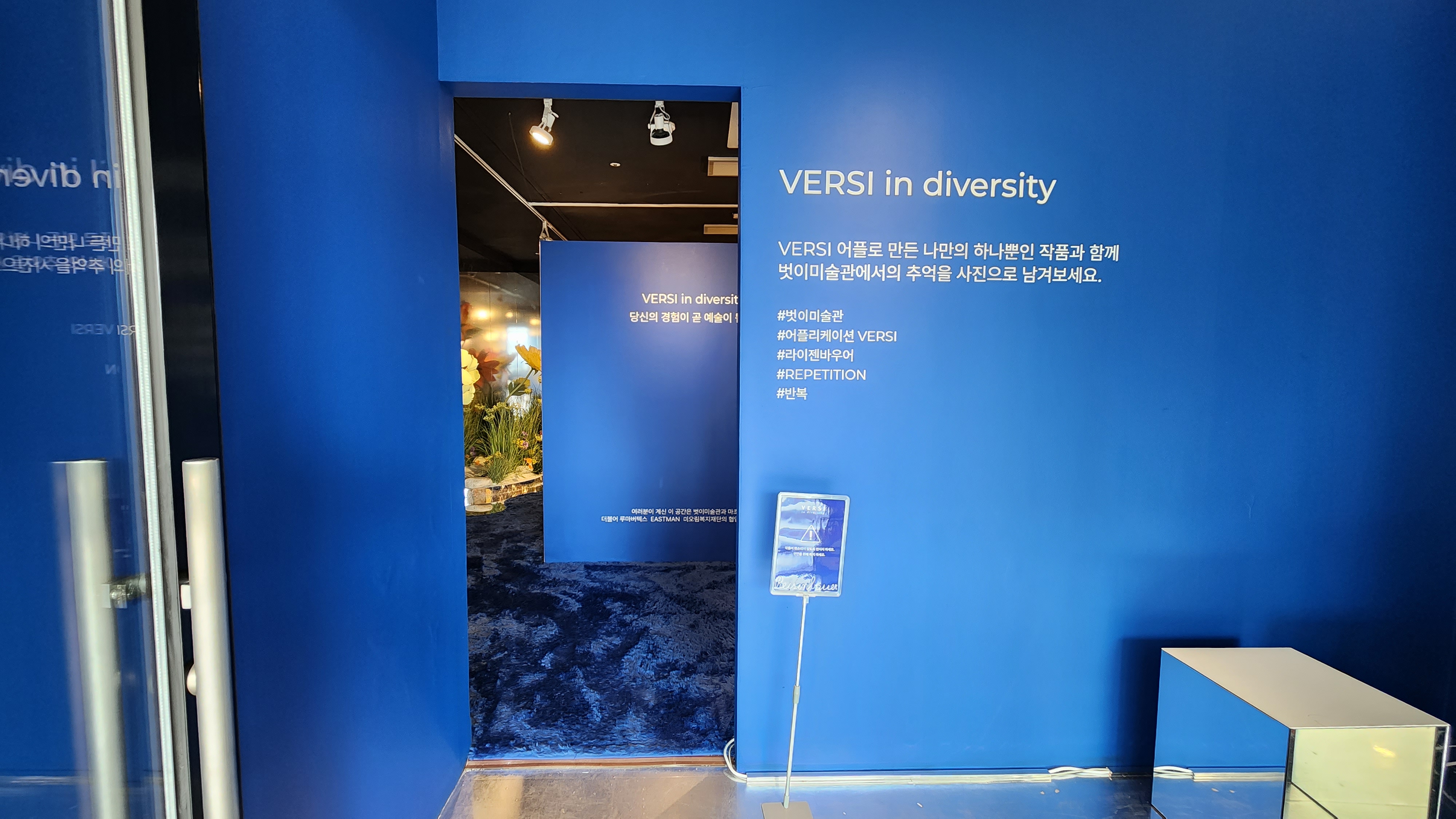 2층 전시 공간 외에 벗이미술관과 마초의사춘기, 루마버텍스, EASTMAN, 미오림복지재단 협업으로 만들어진 공간이 있었는데 자이언트플라워들로 가득해서 사진 찍기 좋았고요, 설치된 포토부스로 정해진 해시태그를 걸어 인스타그램(공개계정)에 사진을 업로드 하면 골라서 인화할 수 있었어요.