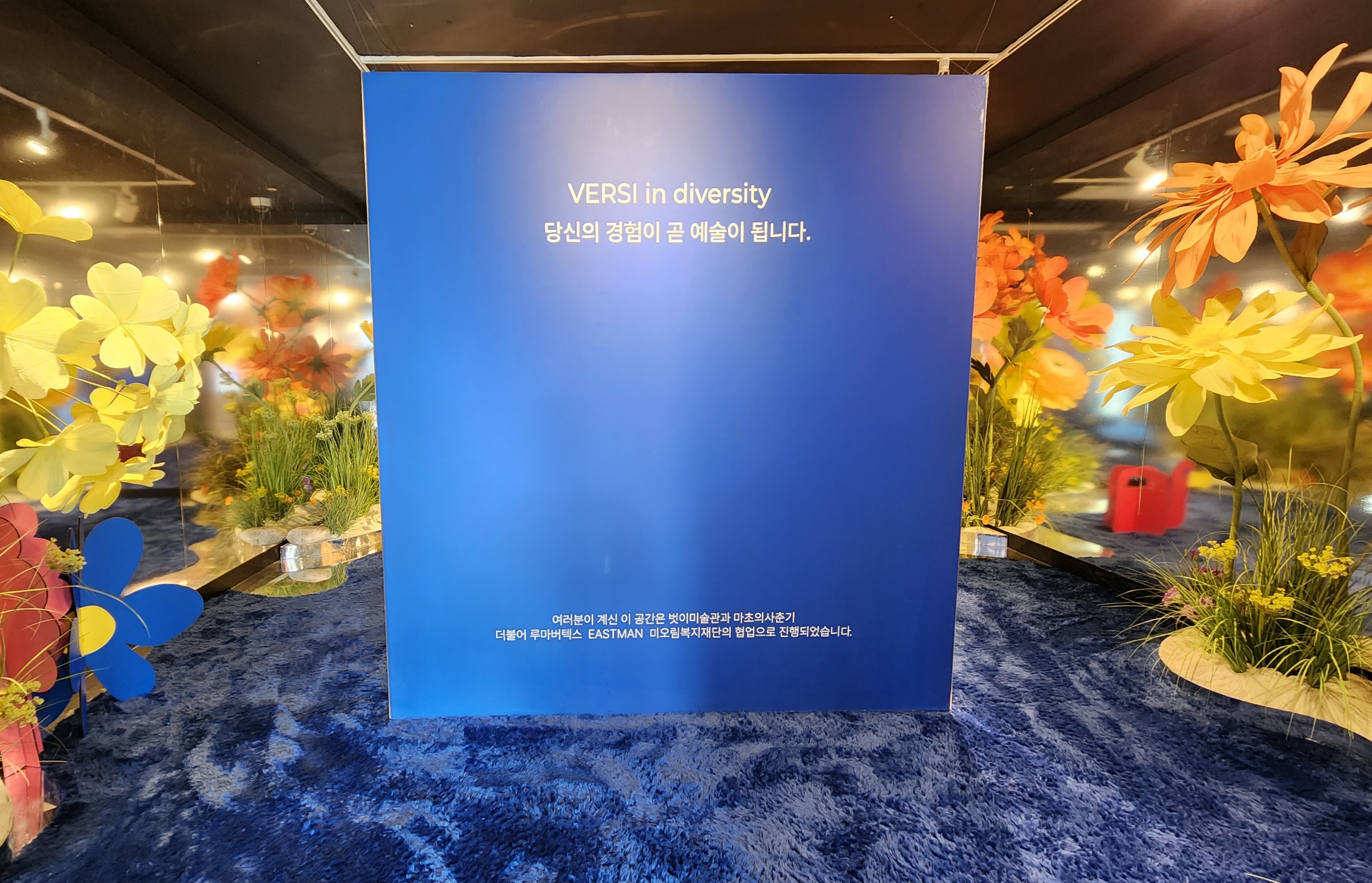 2층 전시 공간 외에 벗이미술관과 마초의사춘기, 루마버텍스, EASTMAN, 미오림복지재단 협업으로 만들어진 공간이 있었는데 자이언트플라워들로 가득해서 사진 찍기 좋았고요, 설치된 포토부스로 정해진 해시태그를 걸어 인스타그램(공개계정)에 사진을 업로드 하면 골라서 인화할 수 있었어요.
