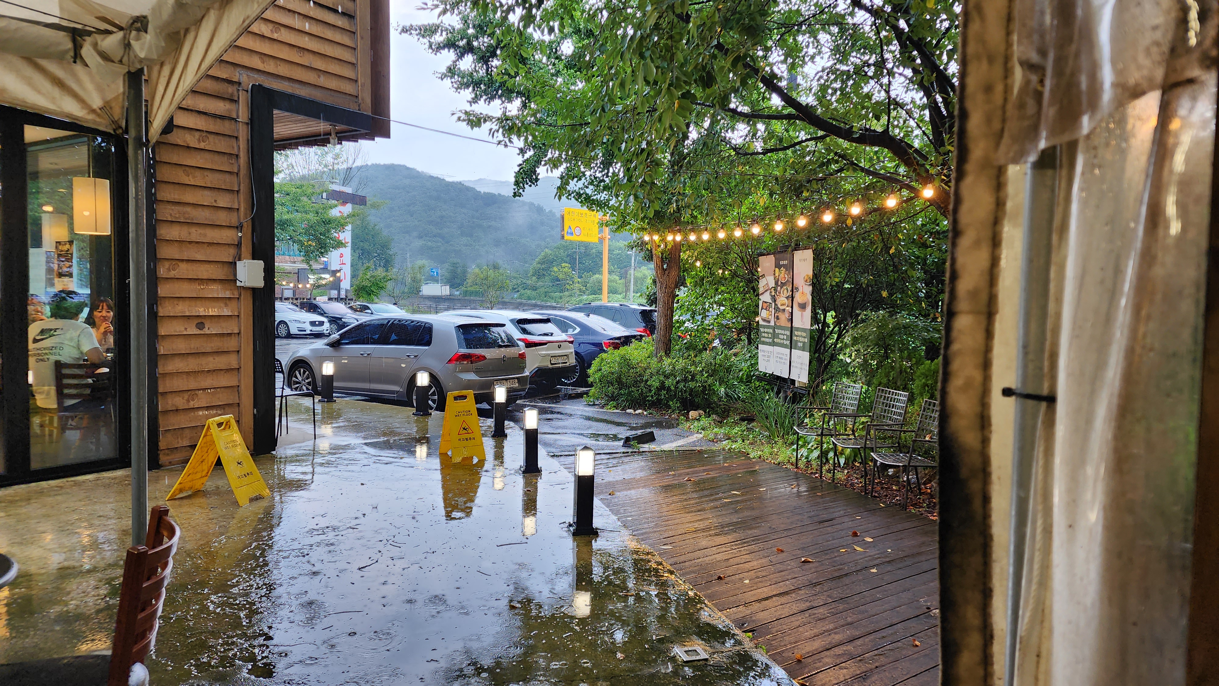 매장 앞 도로공사로 인해 주차장이 좁아졌다고 해요.
