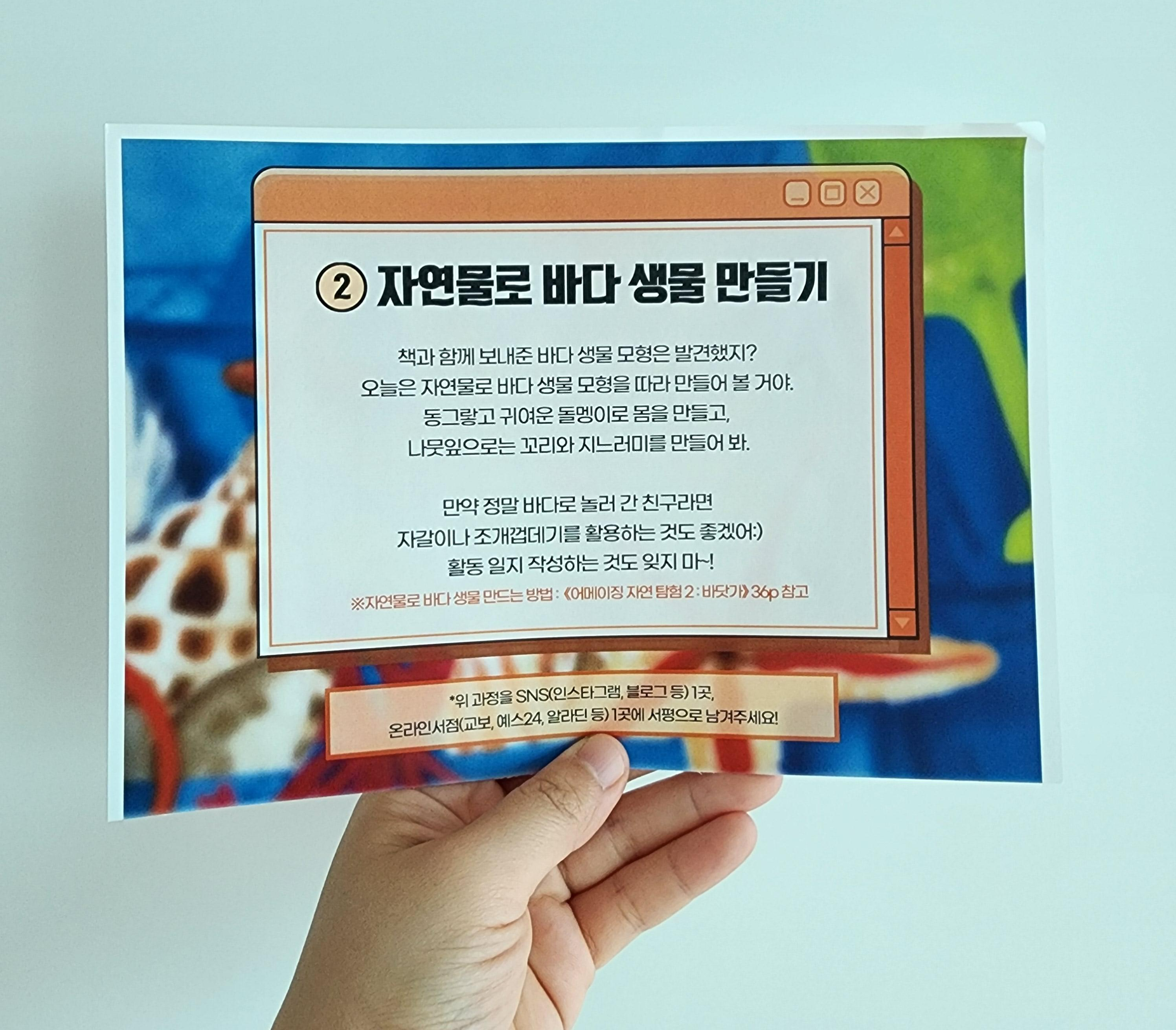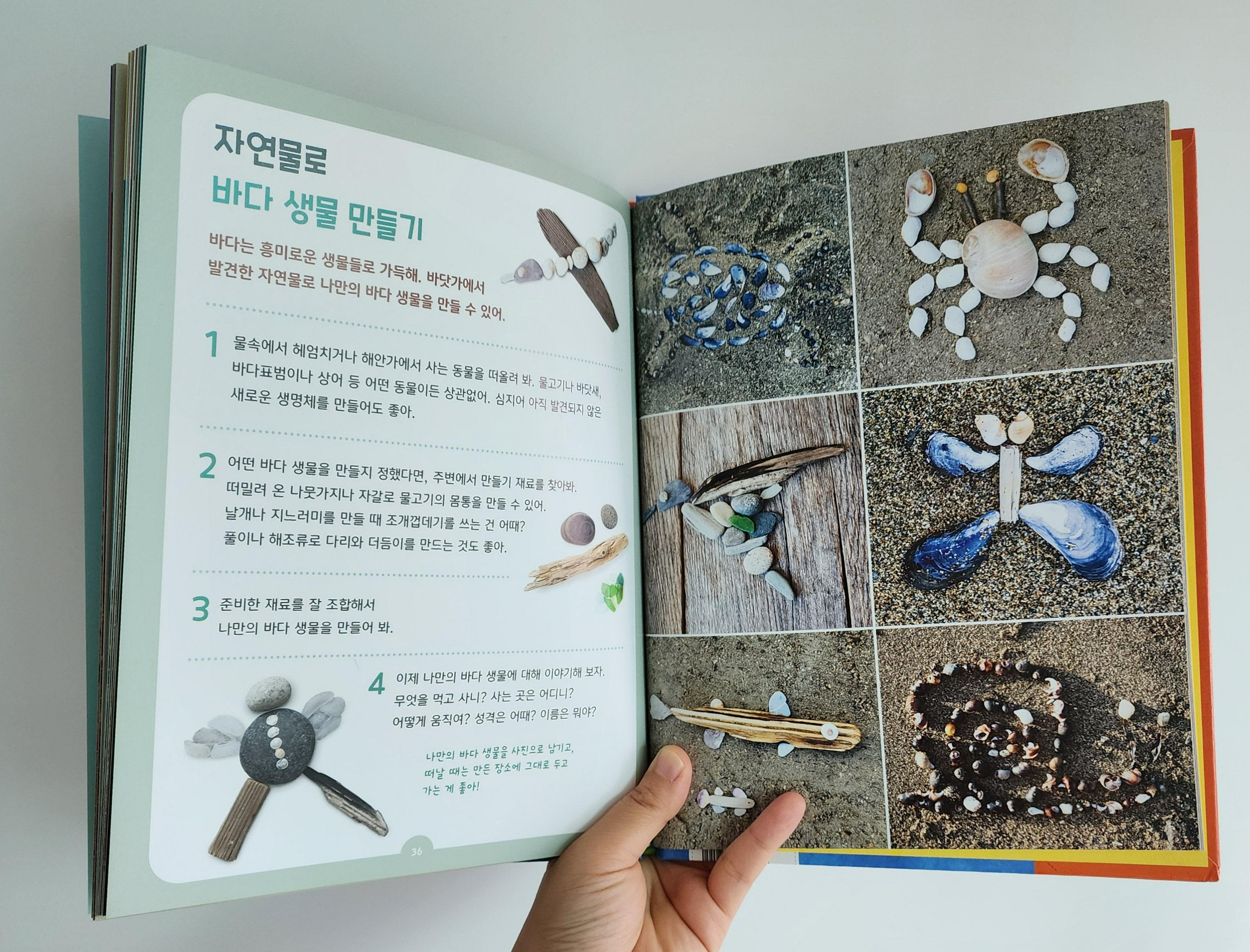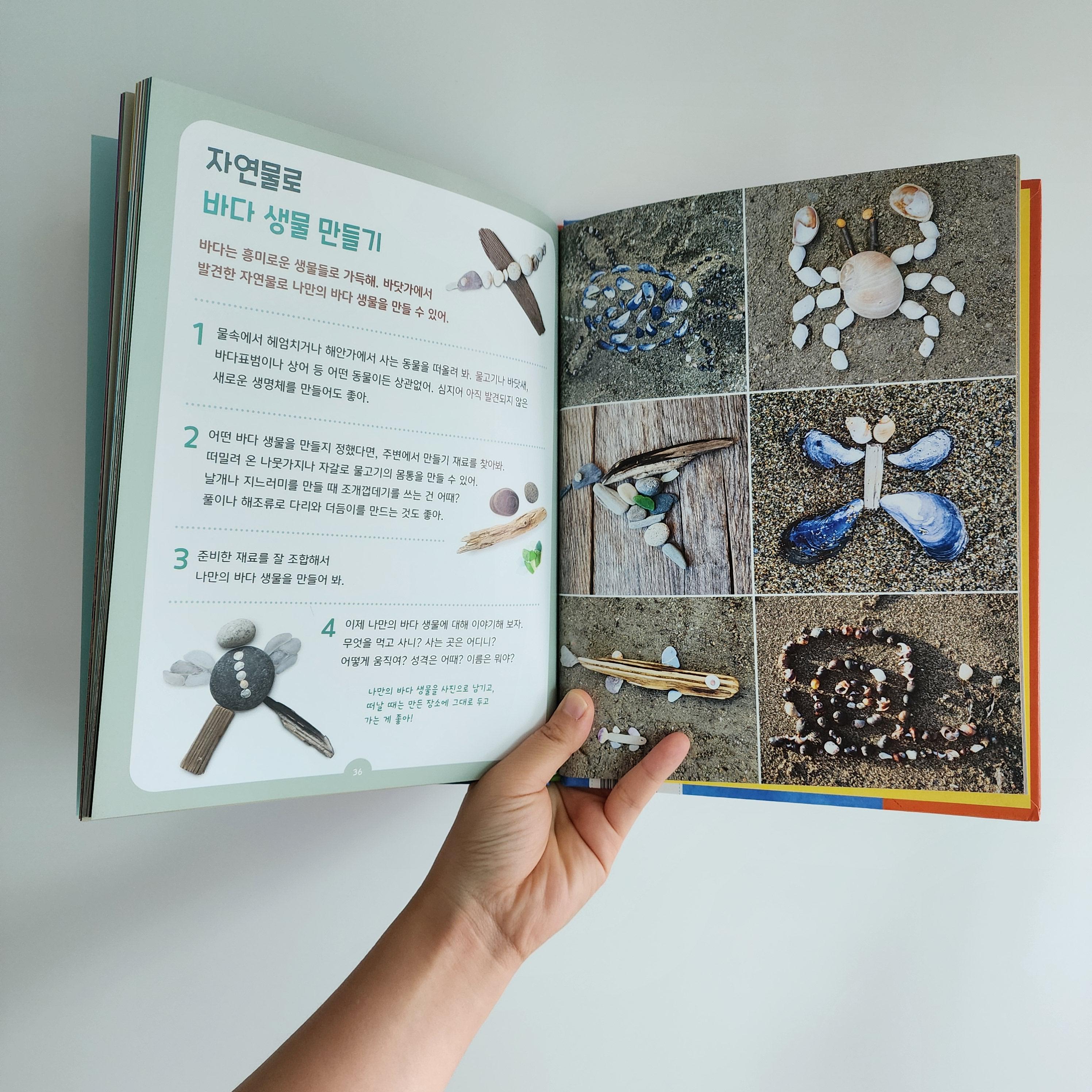 생물 정보 뿐만 아니라 놀이, 만들기 등 바다에서 해볼 수 있는 활동들도 가득해서 아이랑 어떻게 놀아줘야 할 지 막막한 부모님들에게 가이드북 처럼 활용될 수 있을 것 같아요.