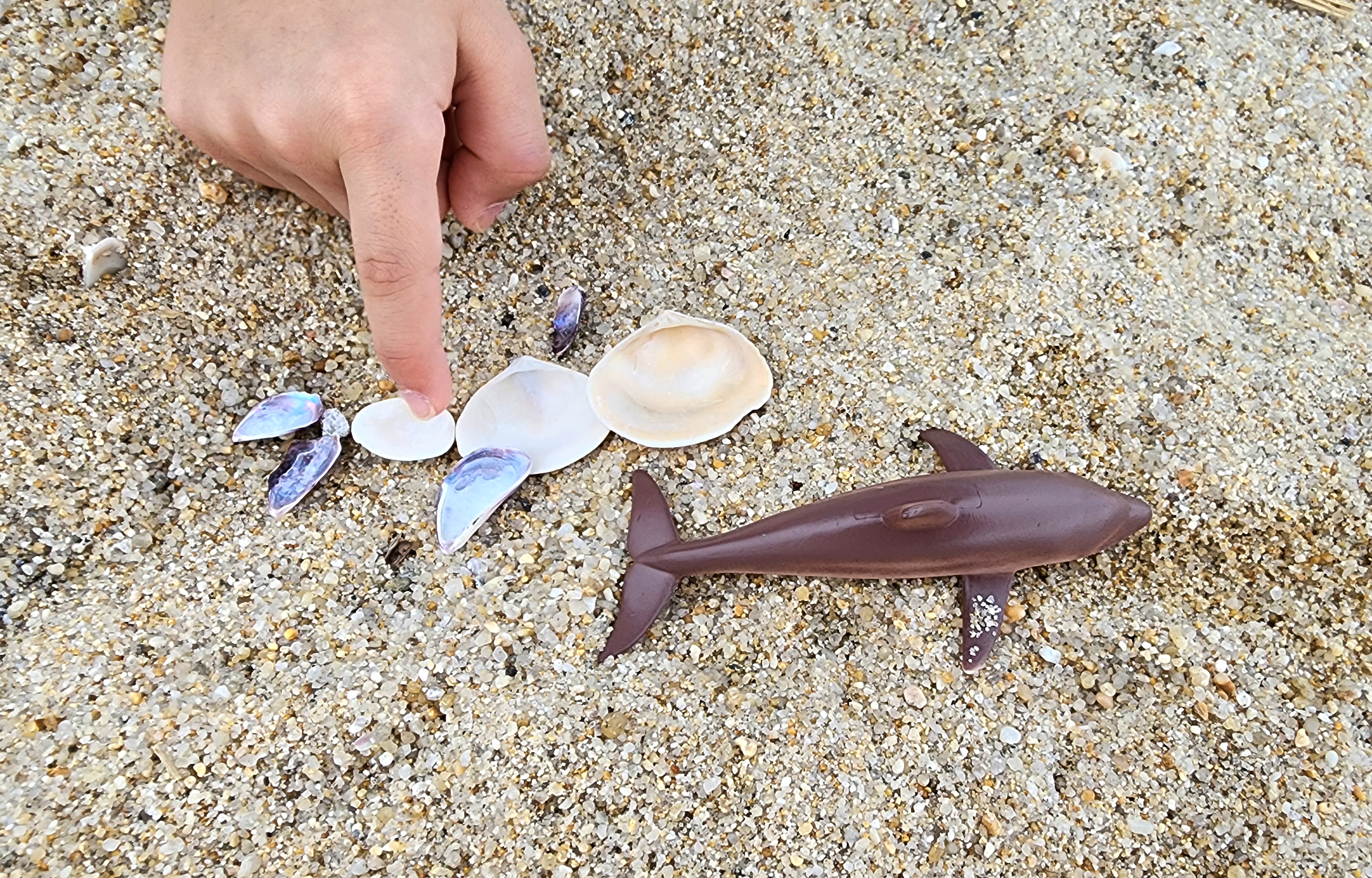 동글이는 바닷가에서 조개껍데기를 모아 선물 받은 피규어와 비슷한 모양을 만들더군요.