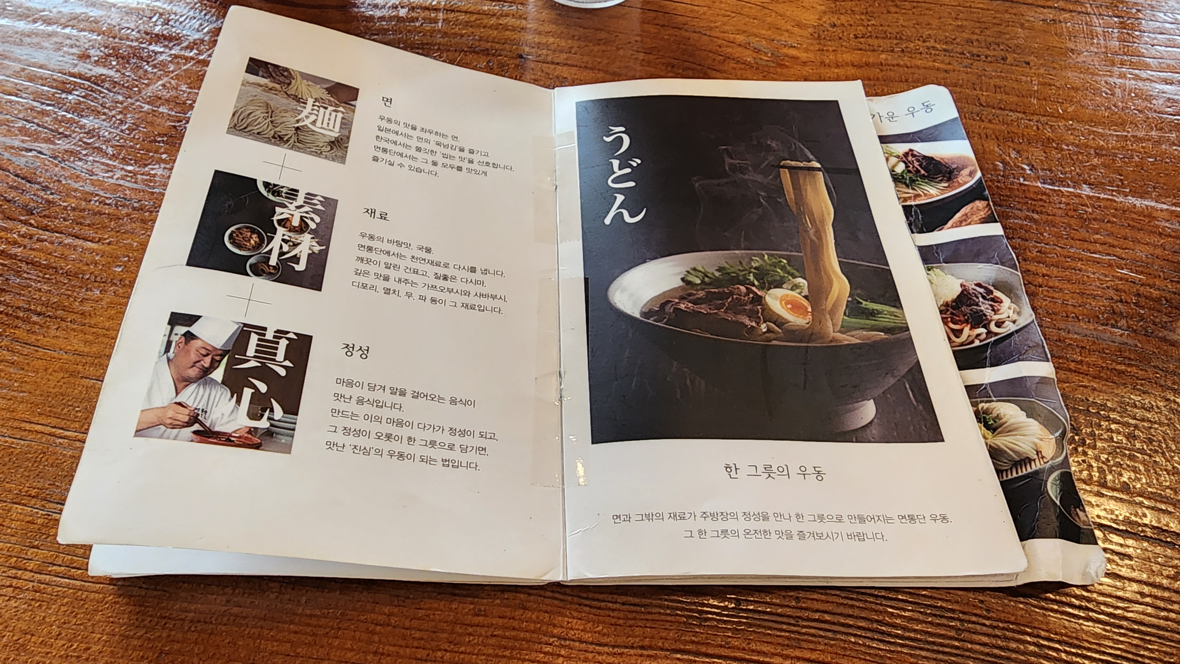 맛있어보이는 메뉴들이 많았는데 기본이 궁금해서 면통단 우동을 주문했어요.