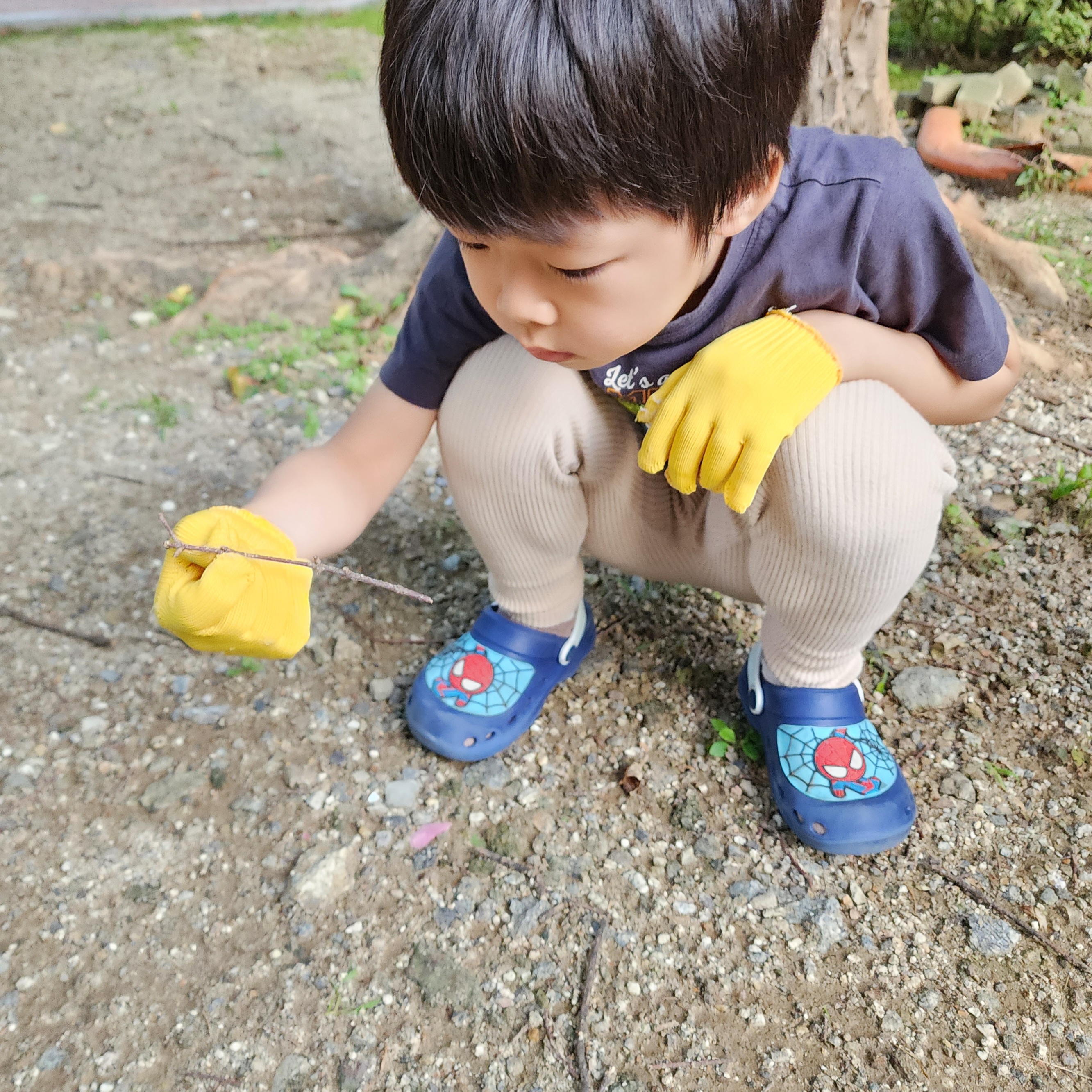 나뭇가지에 찔릴까봐 면장갑도 끼고 조심스럽게 나뭇가지들을 손질했답니다.