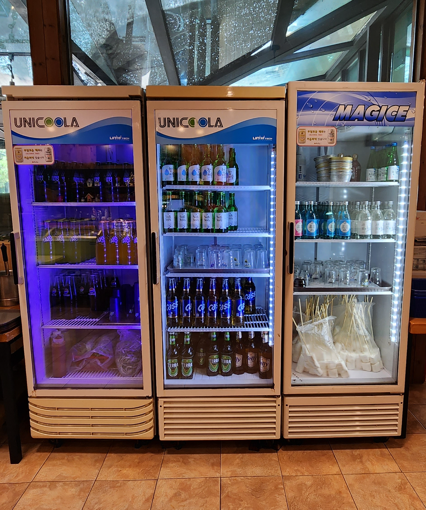 음료 및 주류는 셀프로 냉장고에서 가져다 먹고 계산할 때 정산하는 방식으로 운영되더라고요.