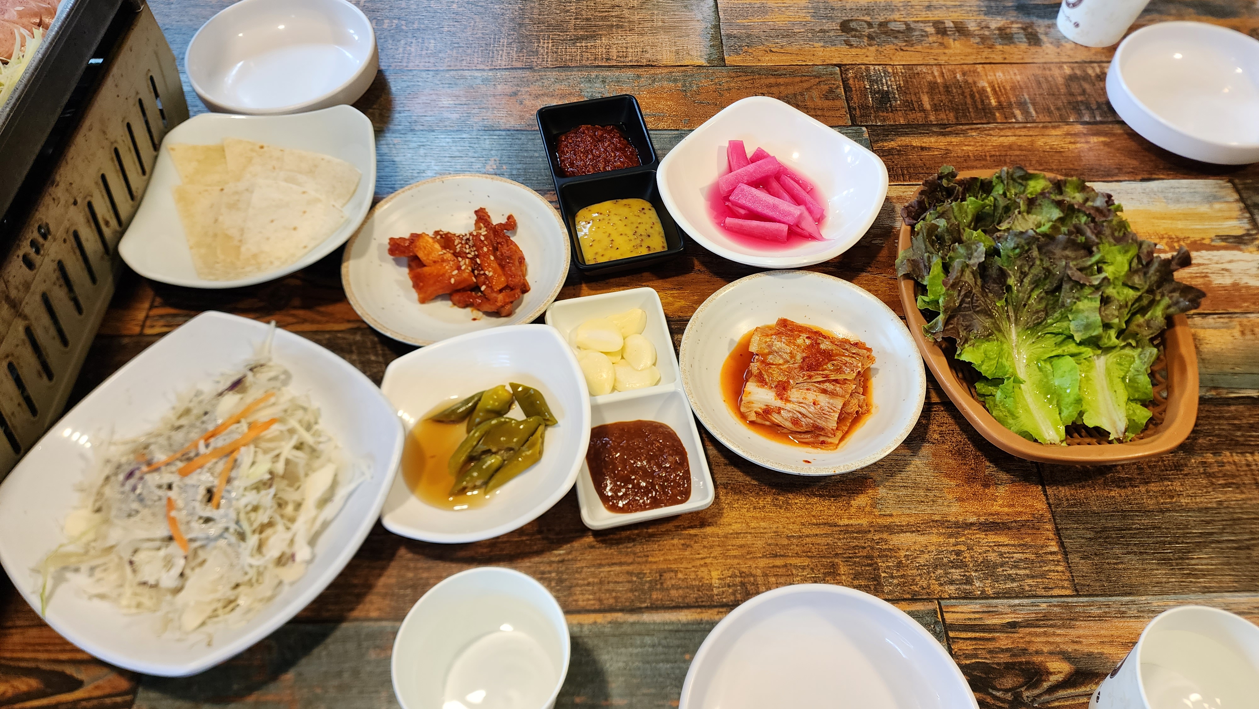 기본찬도 다양한 편이었는데 샐러드, 또띠아, 무말랭이, 고추피클, 무피클, 김치, 상추, 소스 등을 가져다 주시더군요.